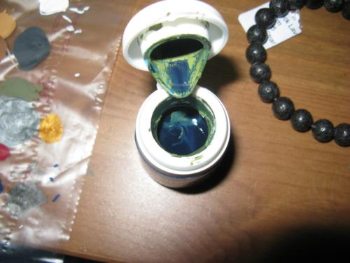After a few trips to the bead store, I found some lava beads which are completely unaffected by liquid as they are simply smooth, round stones. They come in an 8mm size which is big enough to be useful, but small enough to fit through the opening in a vallejo style paint bottle. They weigh considerably more than the pewter skulls which reaper use, so in theory should take less effort to agitate old paint.