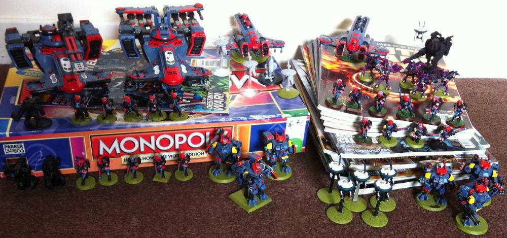 I first got into GW thanks to the Space Crusade box set and its Dreadnought Expansion I was bought back in 1998. I loved it but it was not untill 2002 that I found out it was a Spin Off from a much larger game. And so I began to delve into Games Workshop and the Tau had just been released a year earlier and they were the army I got to play at my introductory games and I fell for them straight away. The advanced tech and stylish suits and armour appealed to me greatly as I love aliens with style, plus I decided I did not want to go down the same route as everyone else at the time which seemed to be Space Marines, Orks or Eldar.