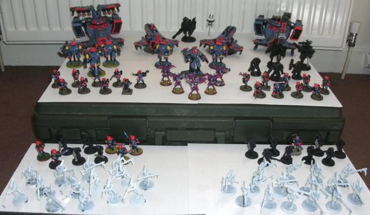- All of the Vehicles, the Command Team in the middle of the upper level, the two upper level Firewarrior Teams and the Vespids are now all complete, bases and all.