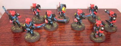 - CONVERSIONS: The first is the binocular wielding trooper (centre, back row) who has leant his rifle against a tree to take a good look at the enemy. The second is the new Shas'Ui recently added (May 2013) (middle left, front row) kneeling to retrieve his helmet. He was promoted from standard trooper when their old Shas'Ui was given the task of heading up Firewarrior Team 4, recently added (May 2013), in hopes that this veteran can keep the noobies in order
