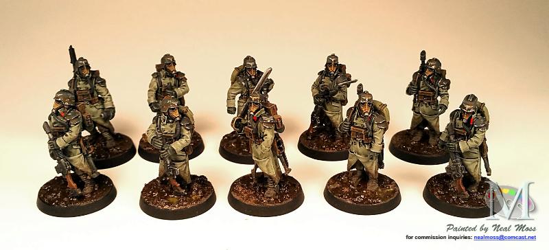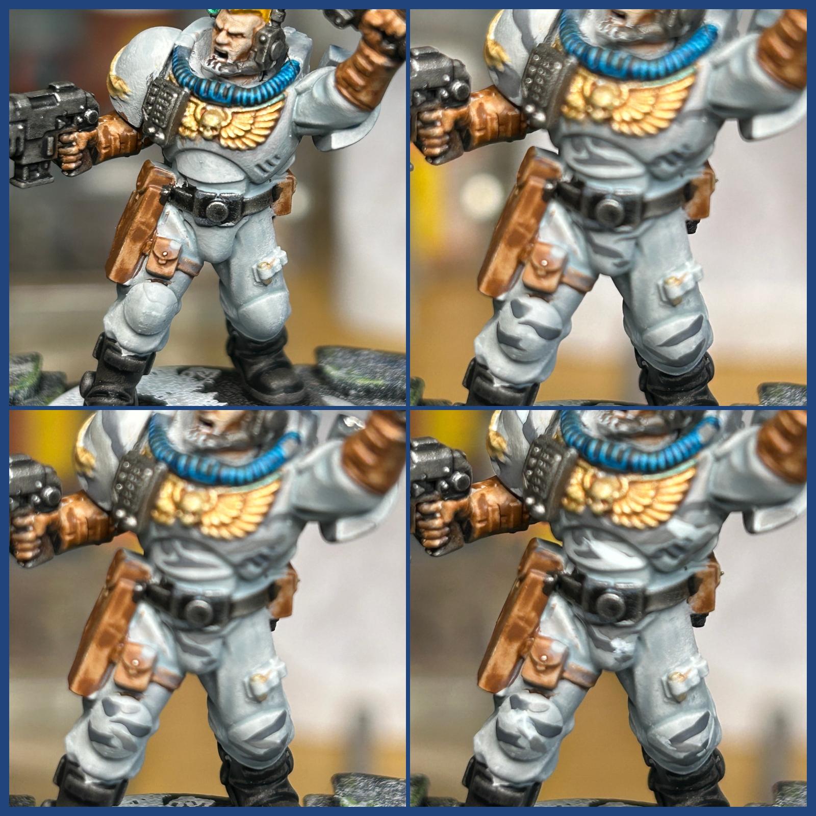 Hi there! Figured I'd start a new thread to showcase some Inq28 characters I made and some that I am still working on. Since the time I bought my first White Dwarf Magazine in 2001, I was in LOVE with the Inquisitor setting and the miniatures. I still fondly remember the awesome battle reports in the issues of WD around that time. While I never got into the Inquisitor game itself, lacking anyone to play against, I was still always interested in the setting because it offers so many intersting possibilities. I love the conversion aspect and creating some custom fluff for the resulting miniatures that befits the grim darkness of the 41st millenium. I recently listened to the Eisenhorn trilogy audiobooks, and am in the middle of the Ravenor series now. This has sparked my interest to delve into some conversion work, but rather than doing some original 54mm size miniatures, I decided to go for the much more prevalent Inq28 scale. With my bitz box having collected stuff from many years of hobbying, I can get creative and make some cool conversions for that game system. I hope there are some fellow Inquisitor fans out there who will apreciate this kind of content. Now without further ado, let's get to the good stuff.