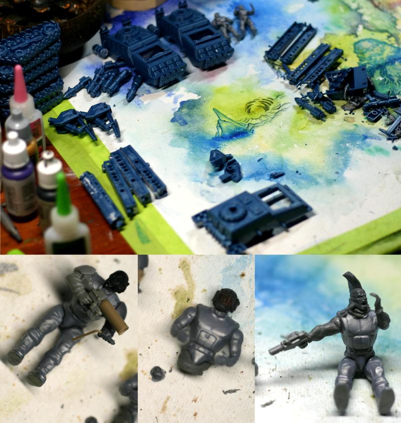 So many cool bits. These are cheap cheap Polyethylene army-men-type toys from the early 2000.