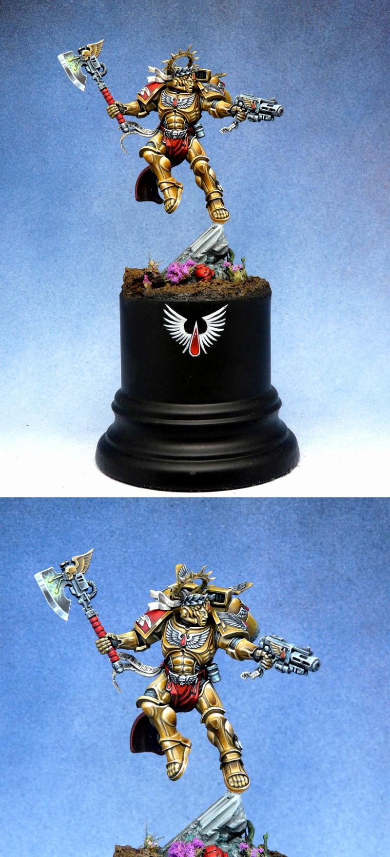 A warrior forged in divine fire, clad in ornate gold and carrying the Emperor’s wrath into battle. The flaming sword, the crackling power claw, and the sweeping crimson cape were all painted to capture the majesty and fury of a true champion. This model stands as a symbol of authority, faith, and unyielding strength.