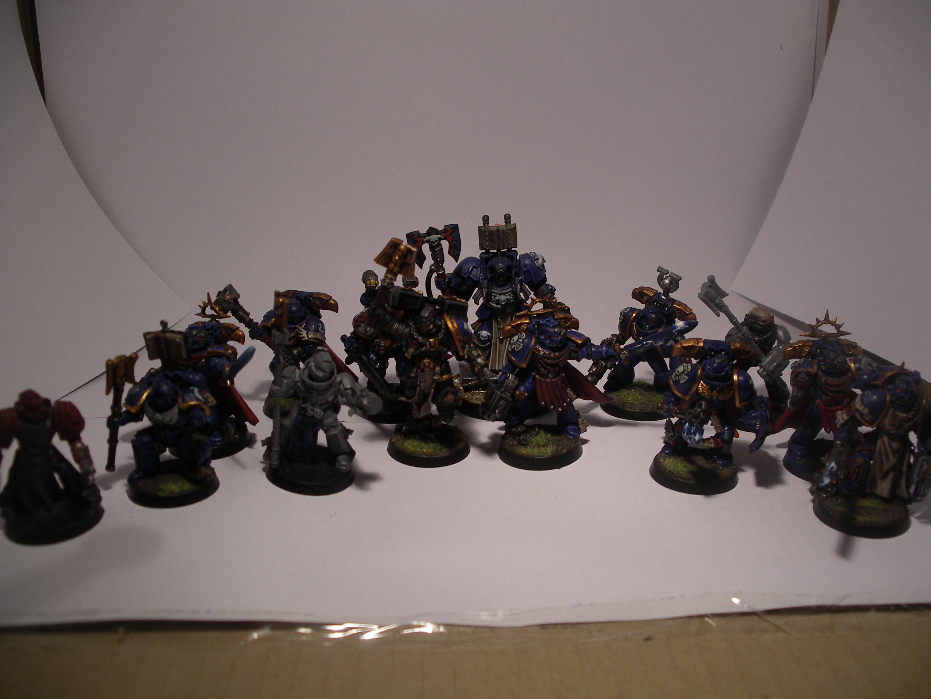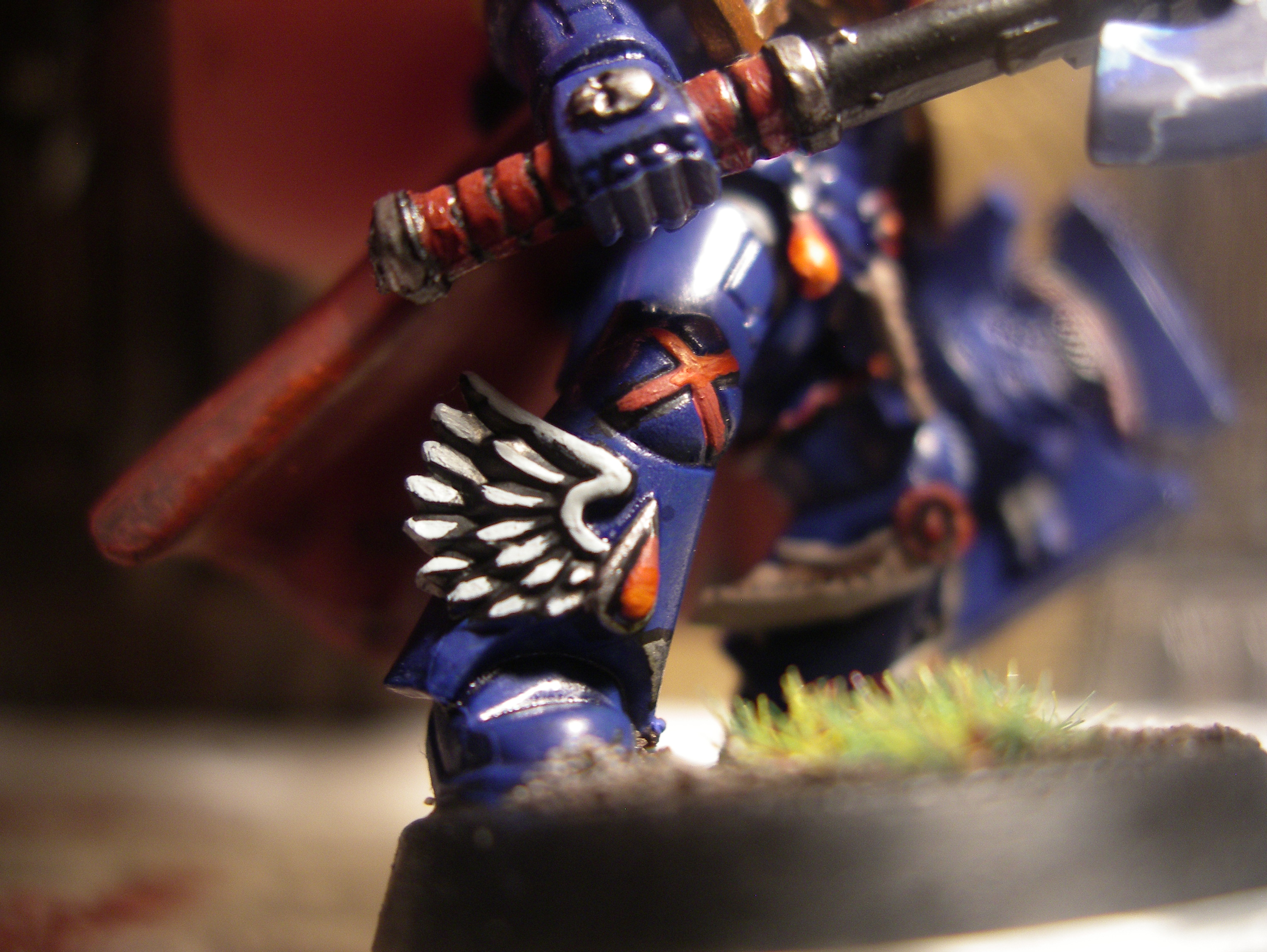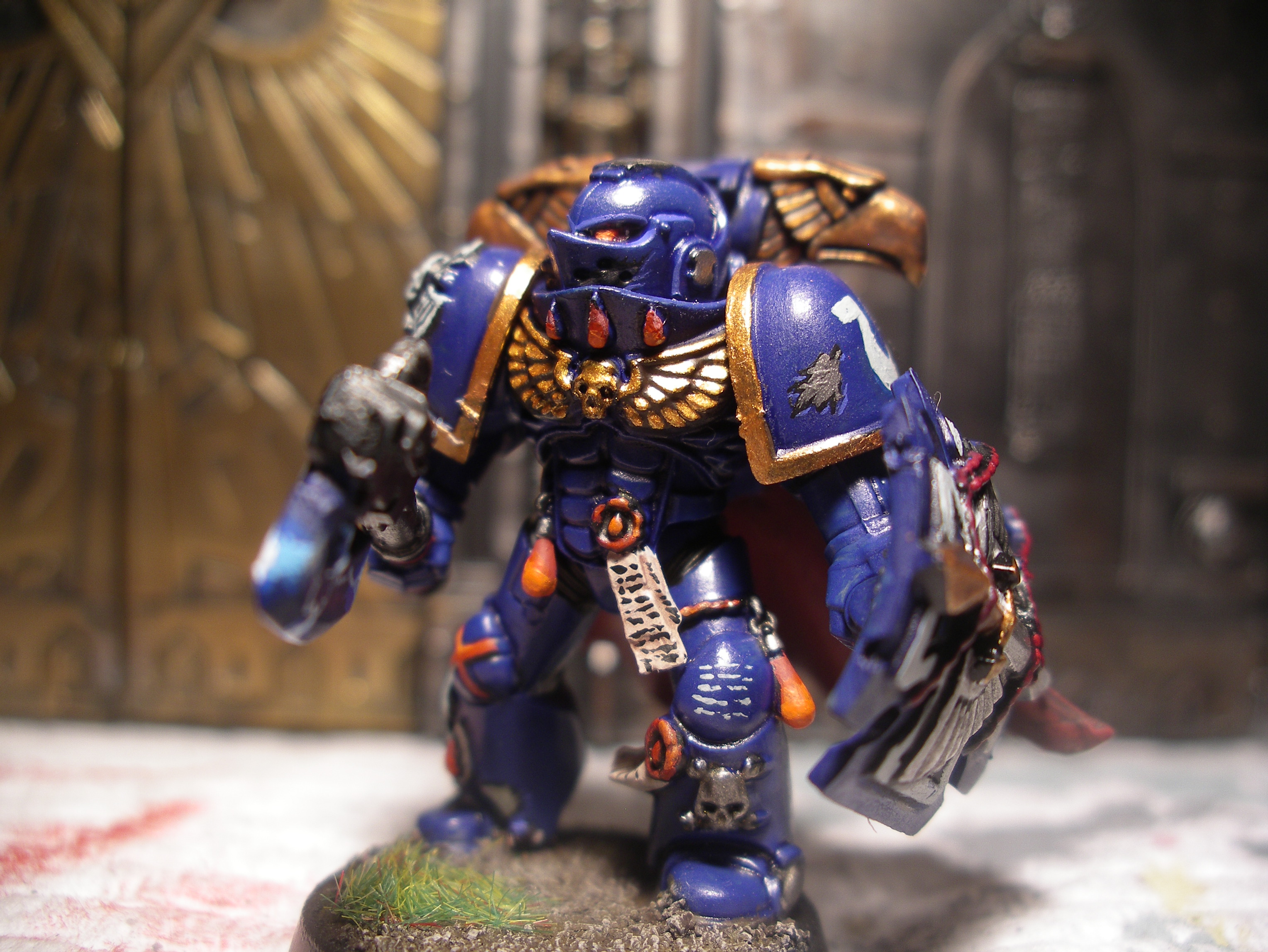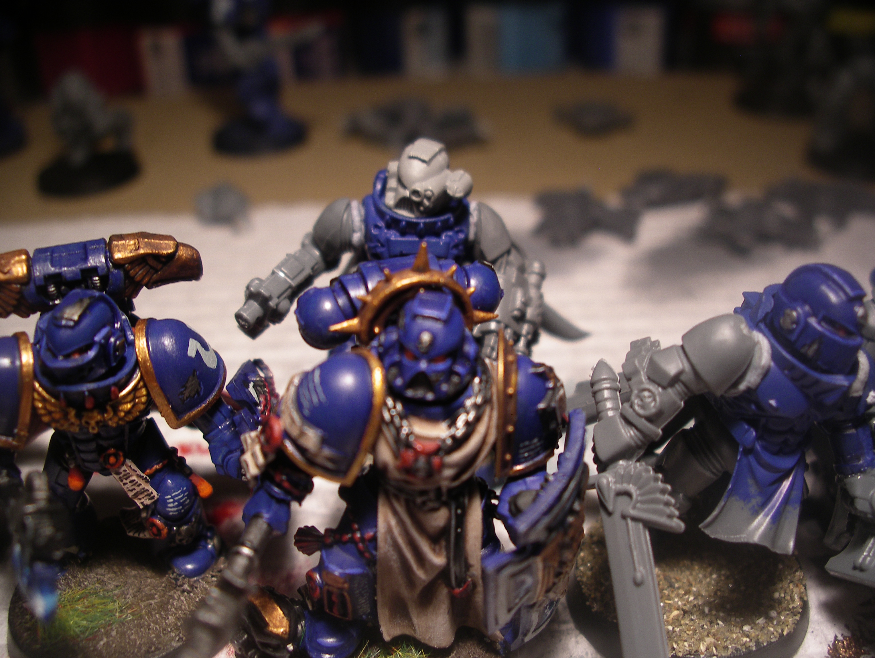 I just found this, and I really like your painting style and your conversion work; however, I do think all the SW and BA bitz look out of place on ultramarines. Blood drops and wolf heads just do not fit them.
