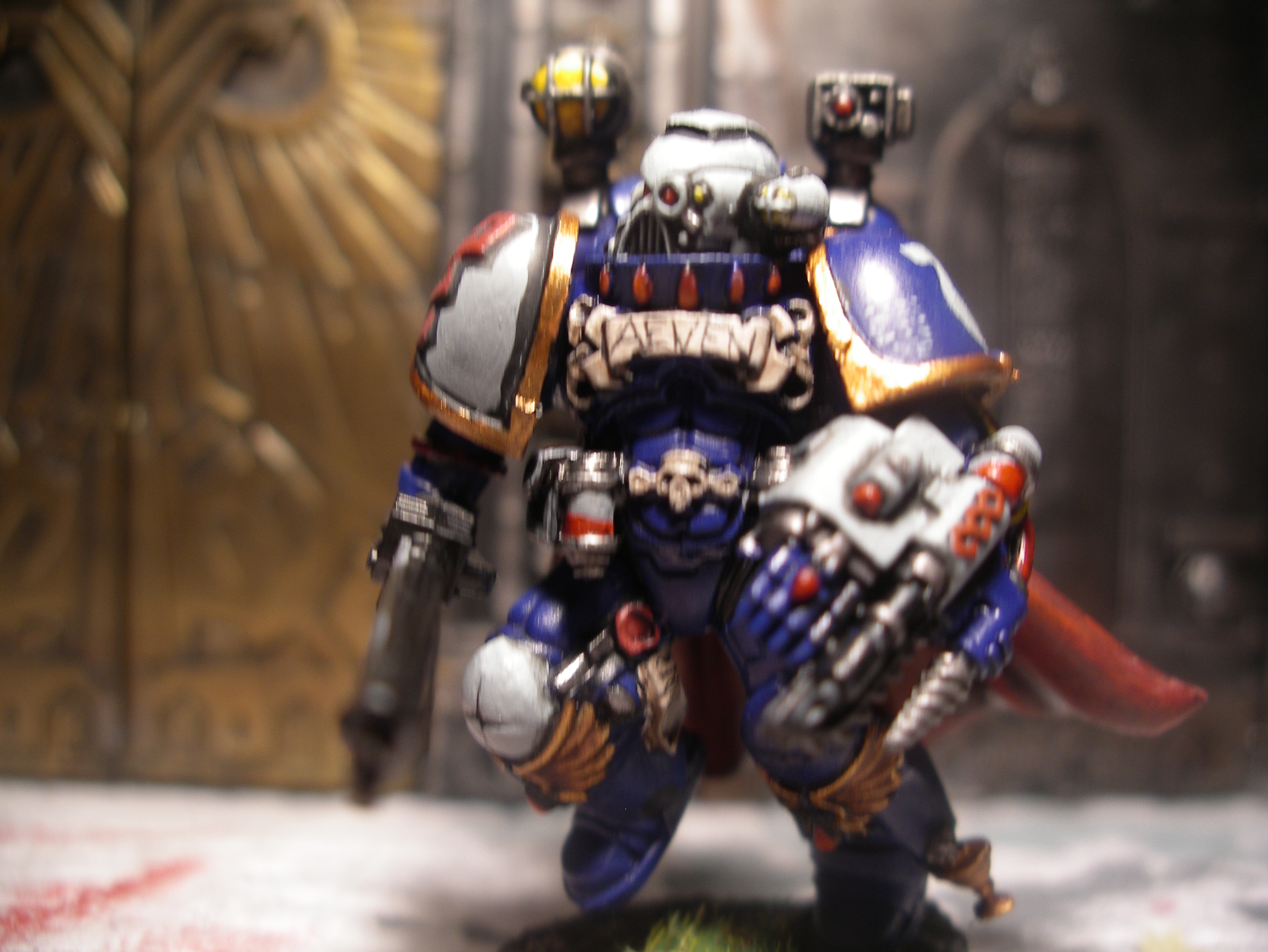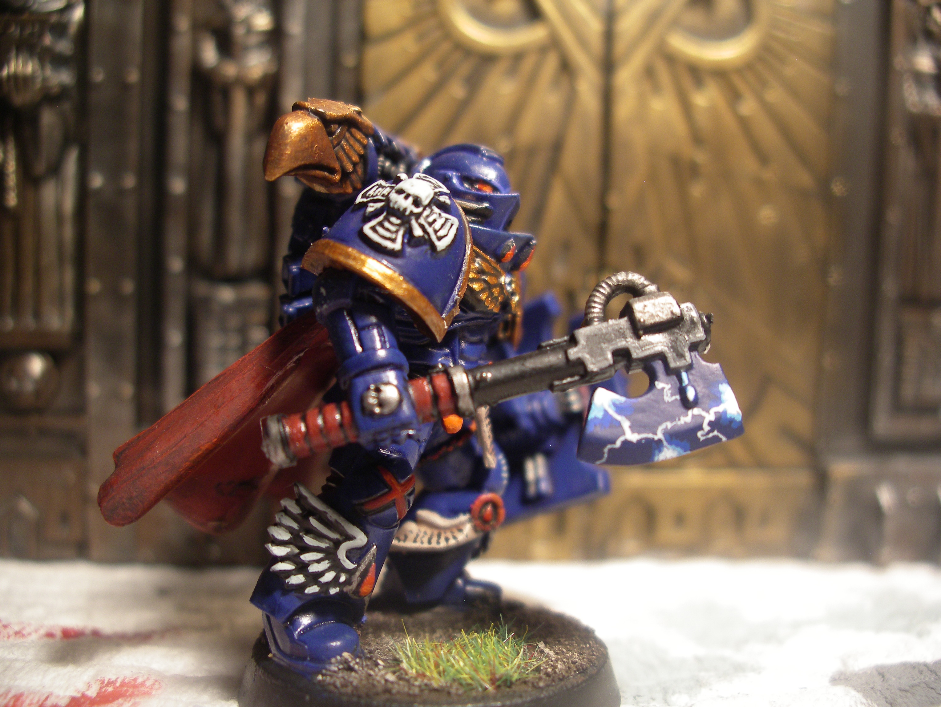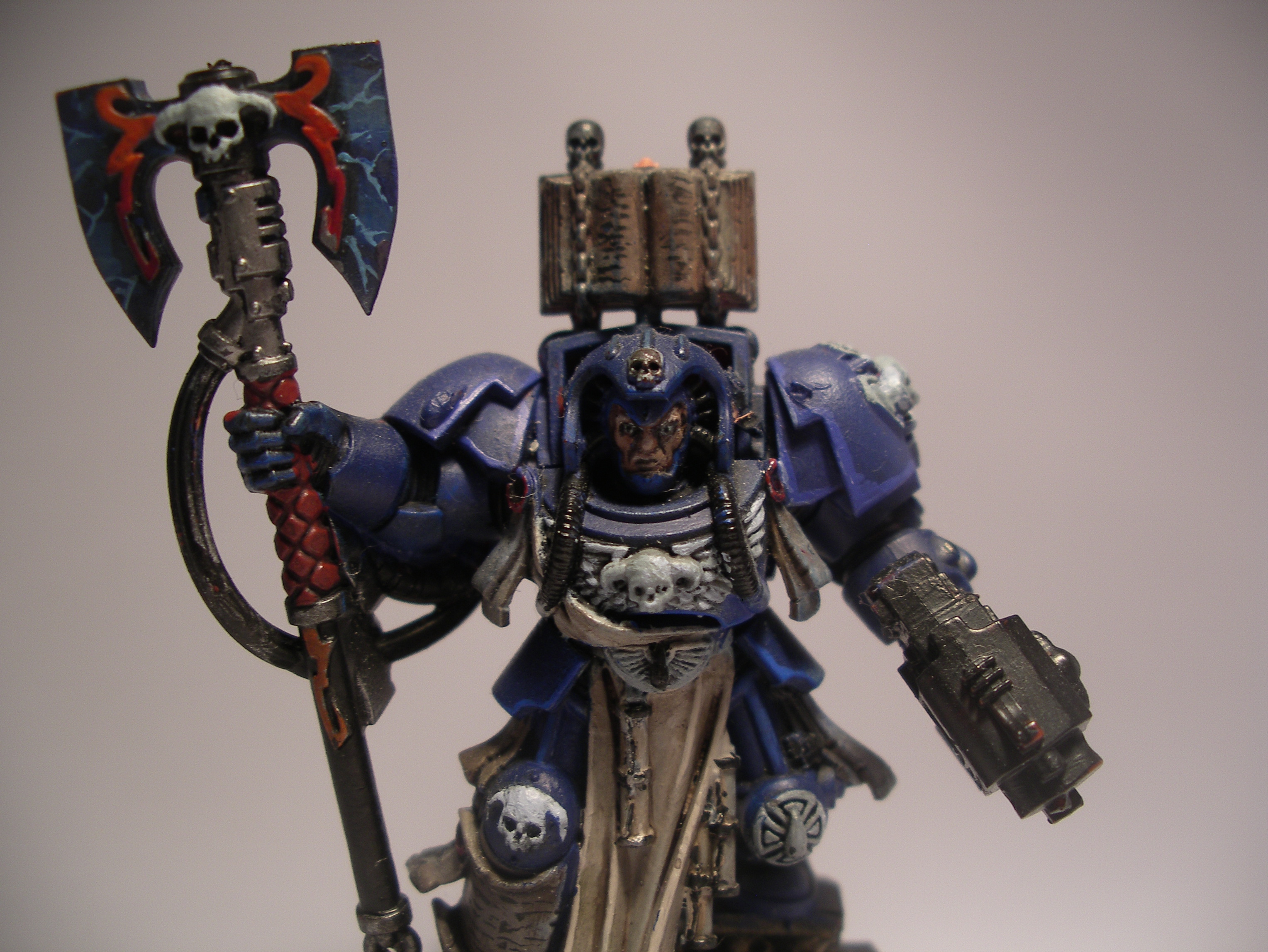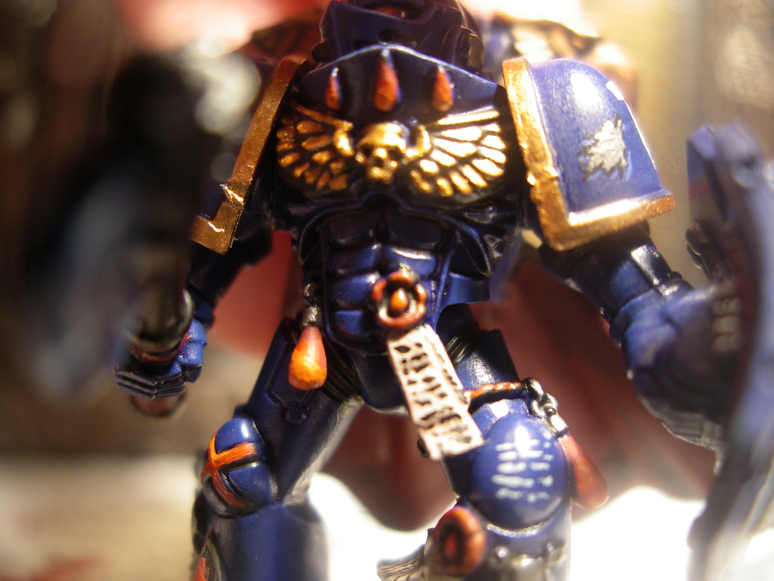 I just found this, and I really like your painting style and your conversion work; however, I do think all the SW and BA bitz look out of place on ultramarines. Blood drops and wolf heads just do not fit them.