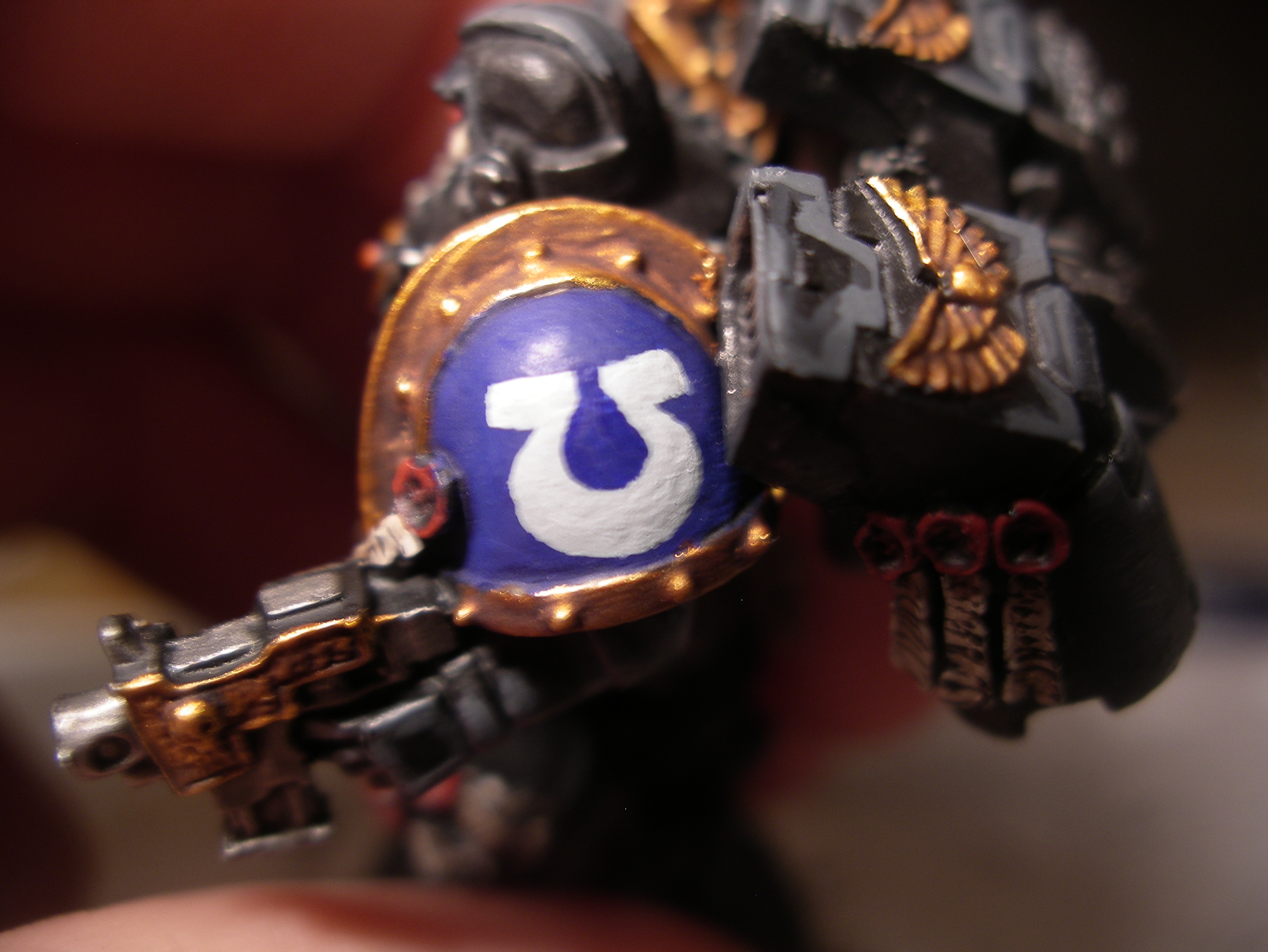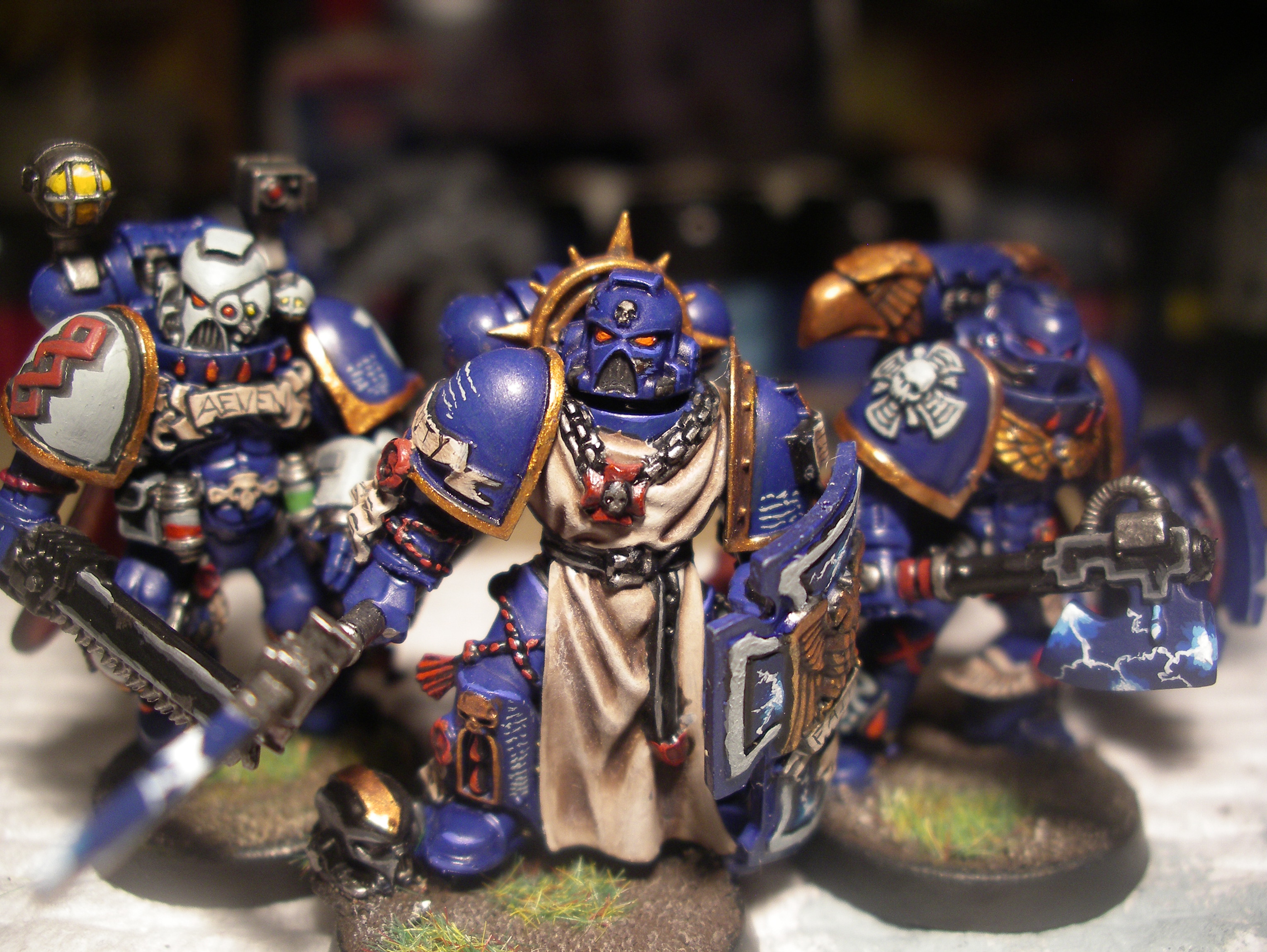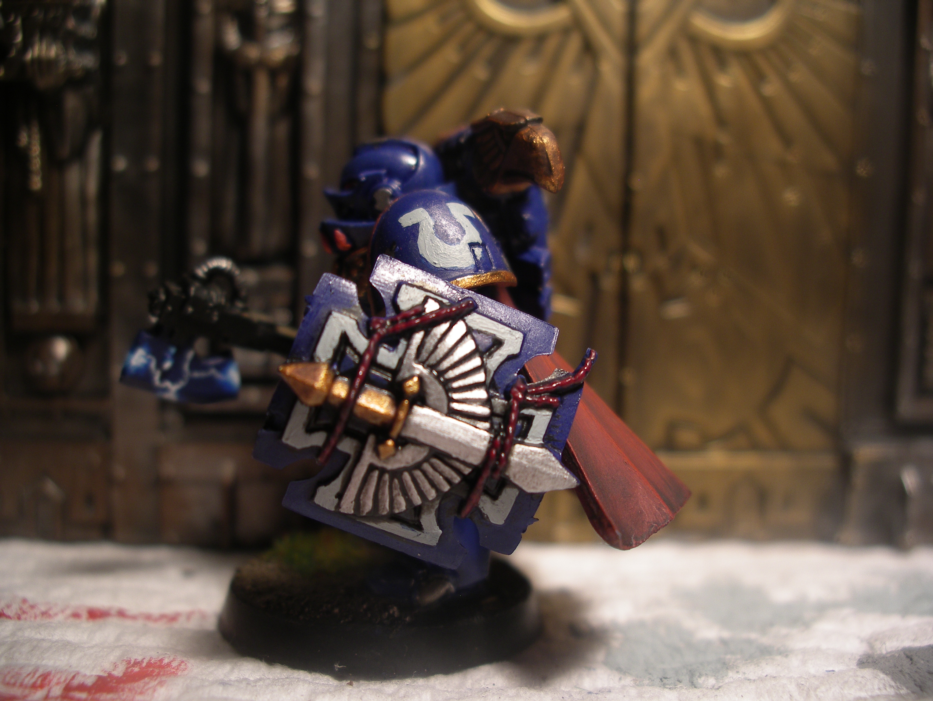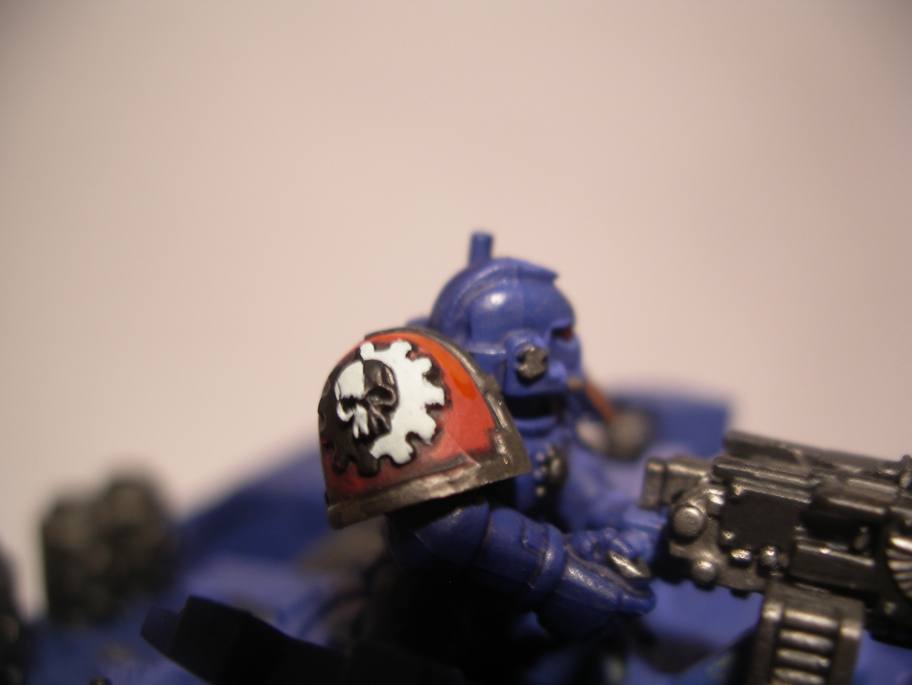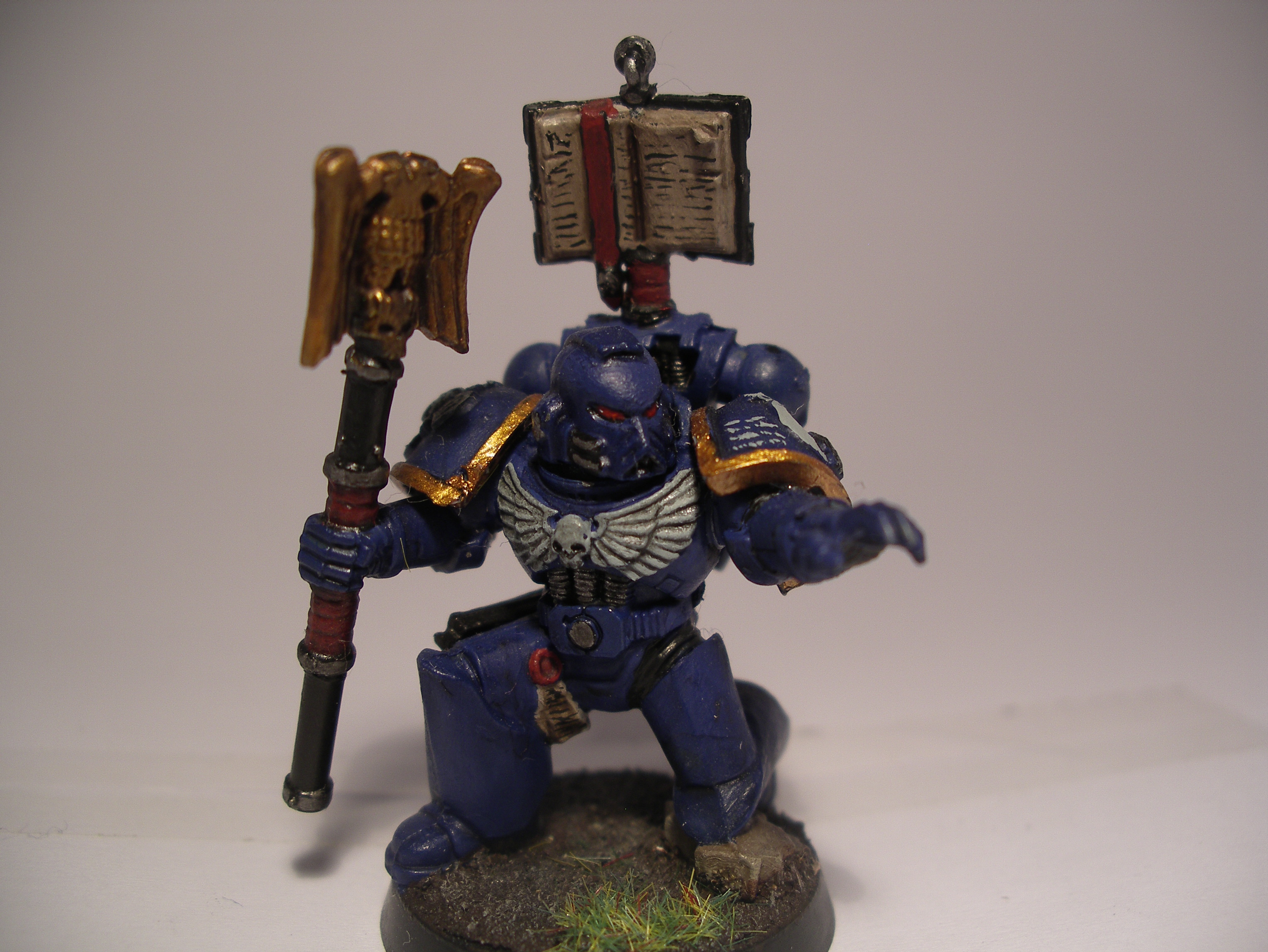 I just found this, and I really like your painting style and your conversion work; however, I do think all the SW and BA bitz look out of place on ultramarines. Blood drops and wolf heads just do not fit them.