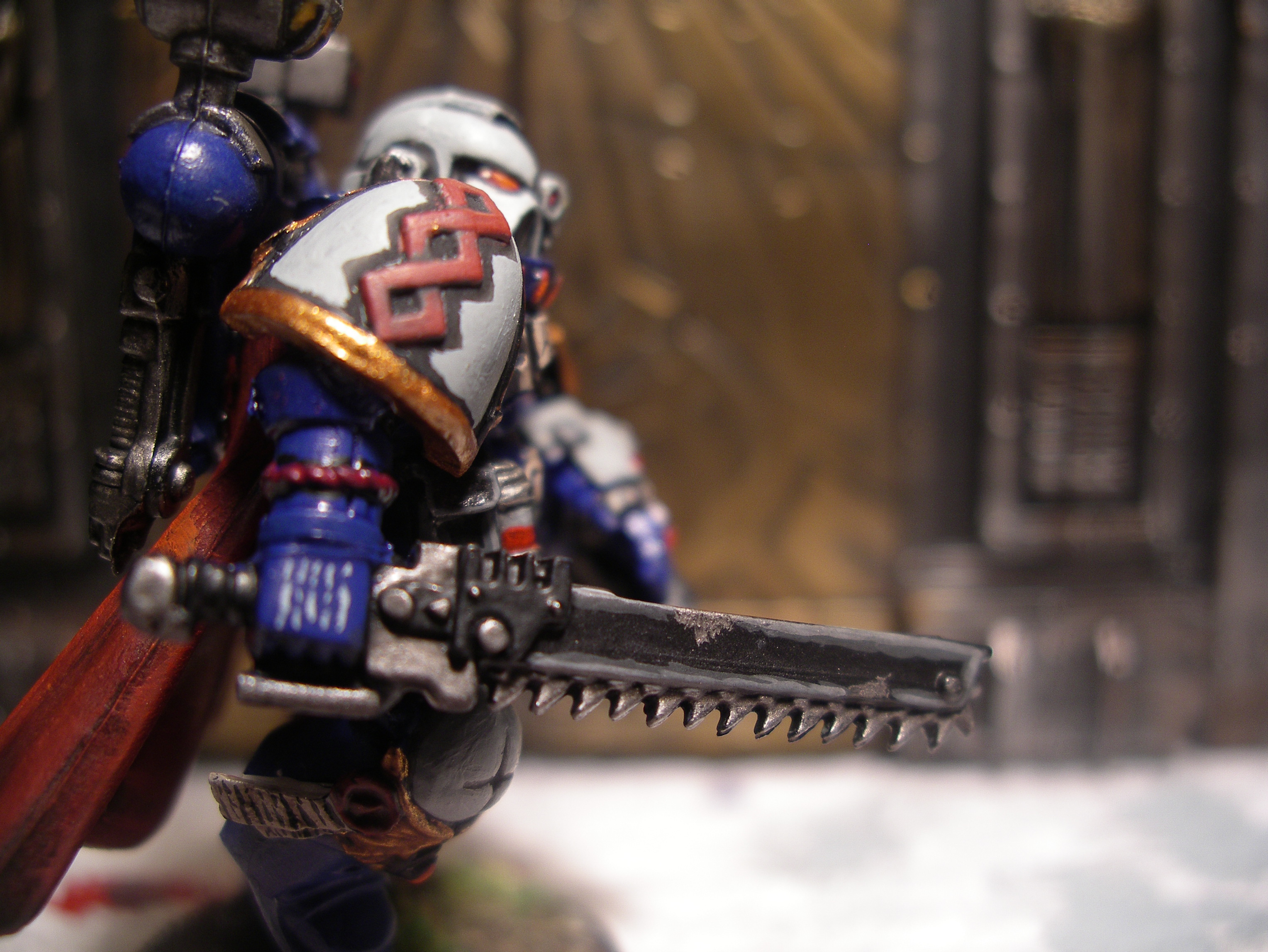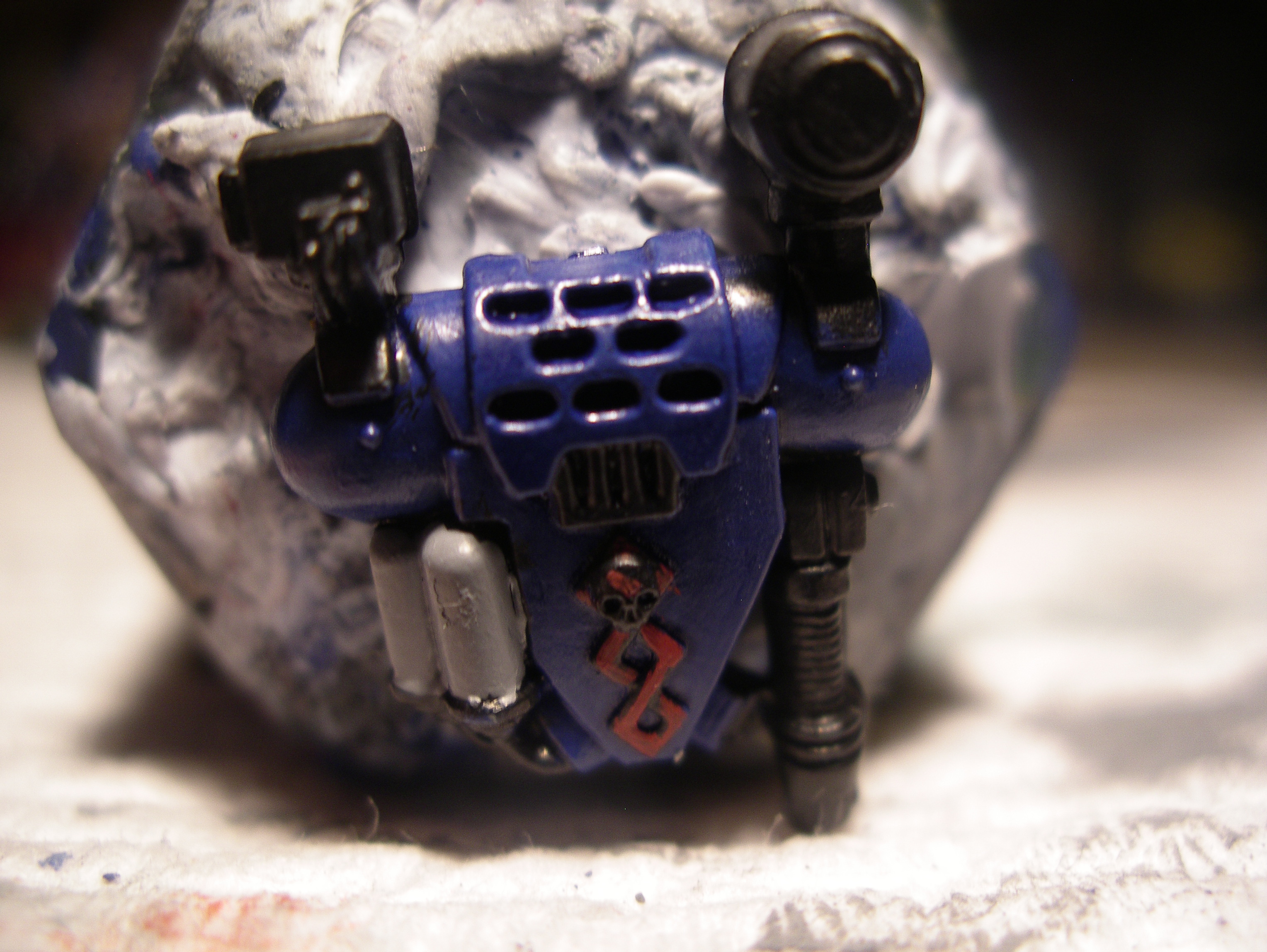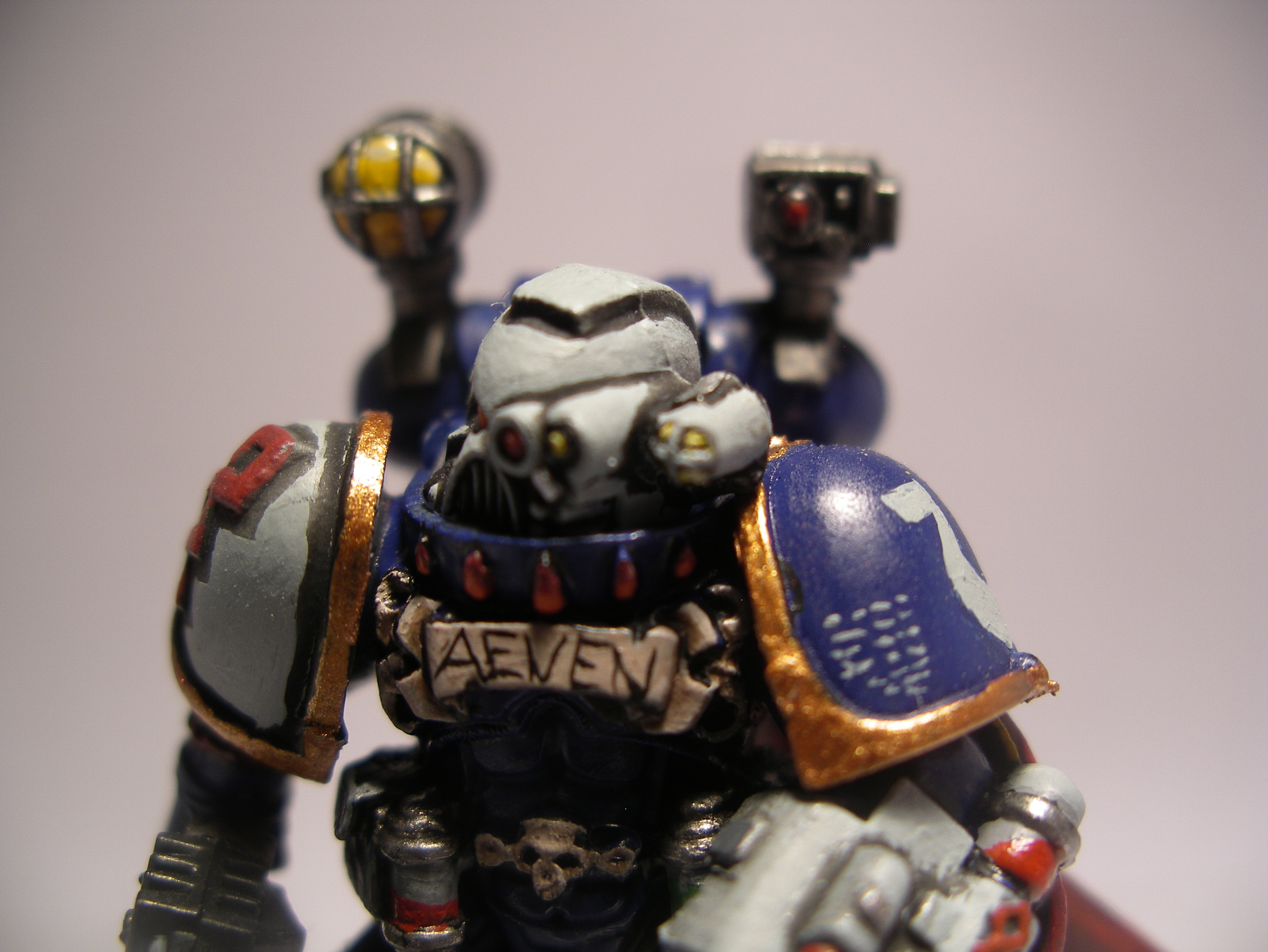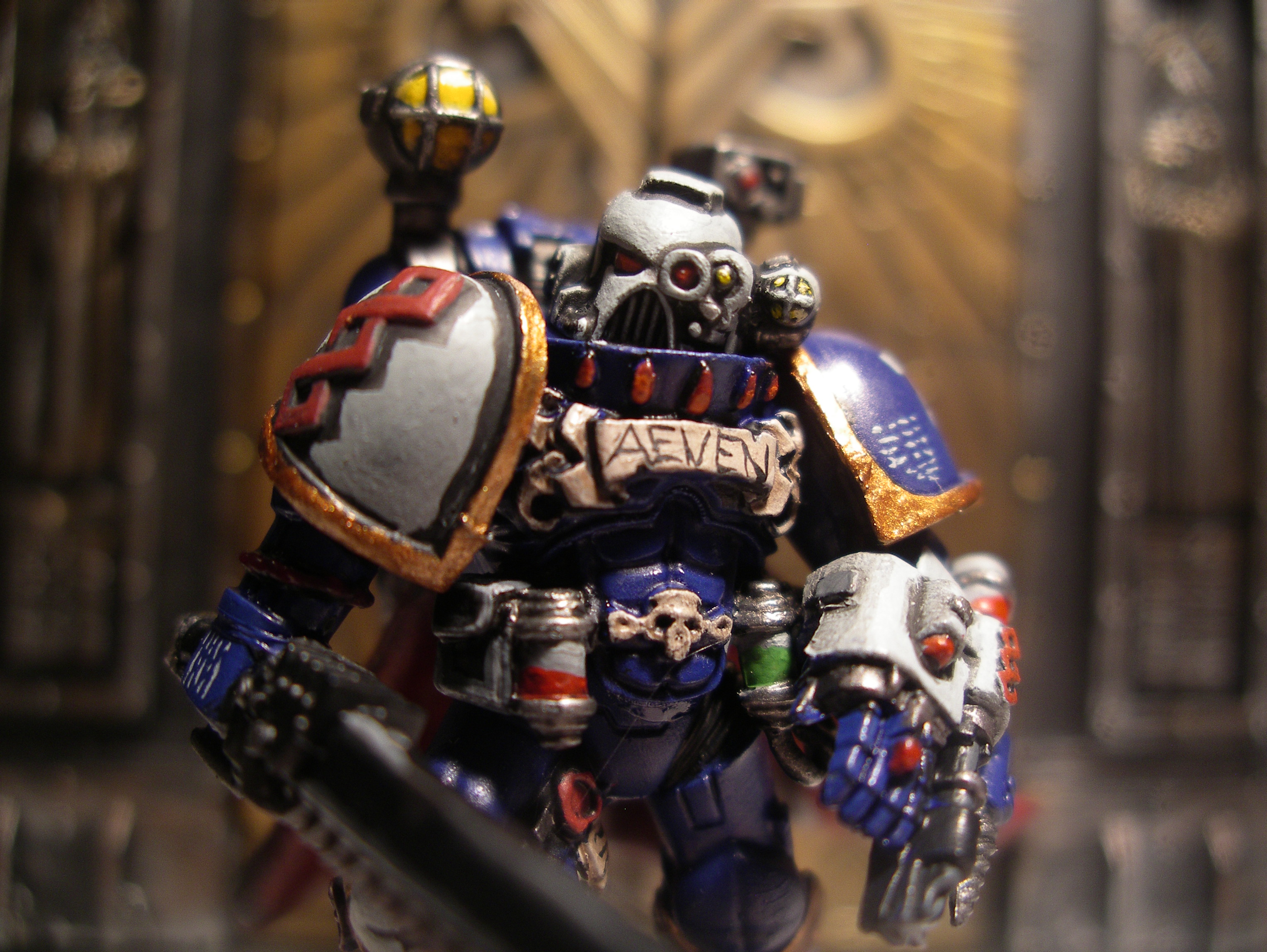 I just found this, and I really like your painting style and your conversion work; however, I do think all the SW and BA bitz look out of place on ultramarines. Blood drops and wolf heads just do not fit them.
