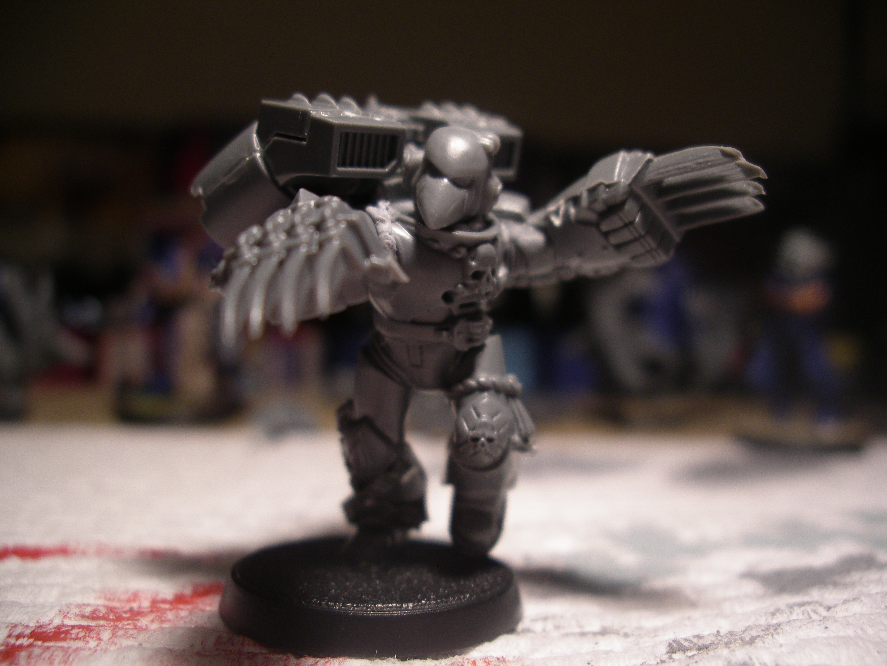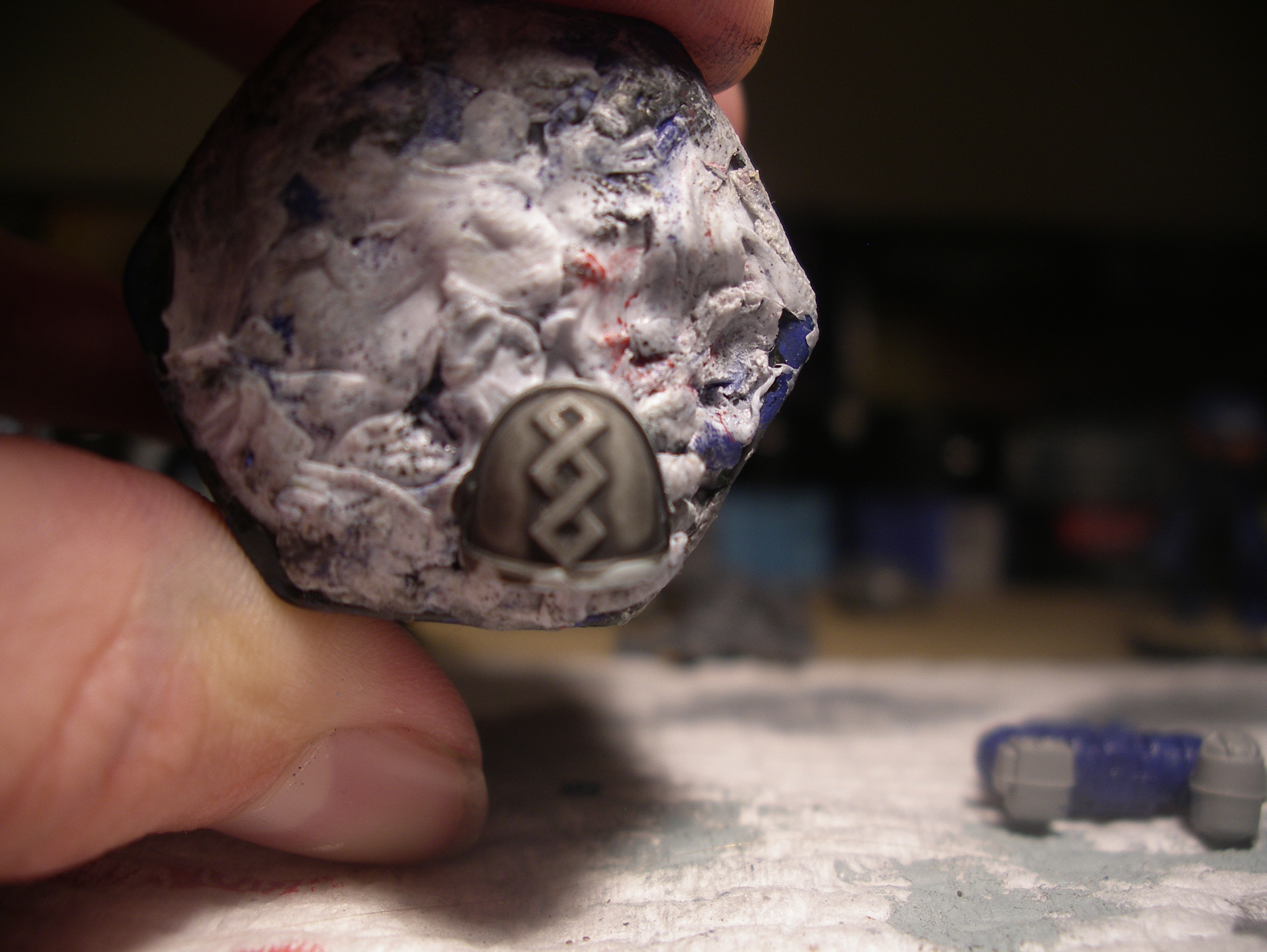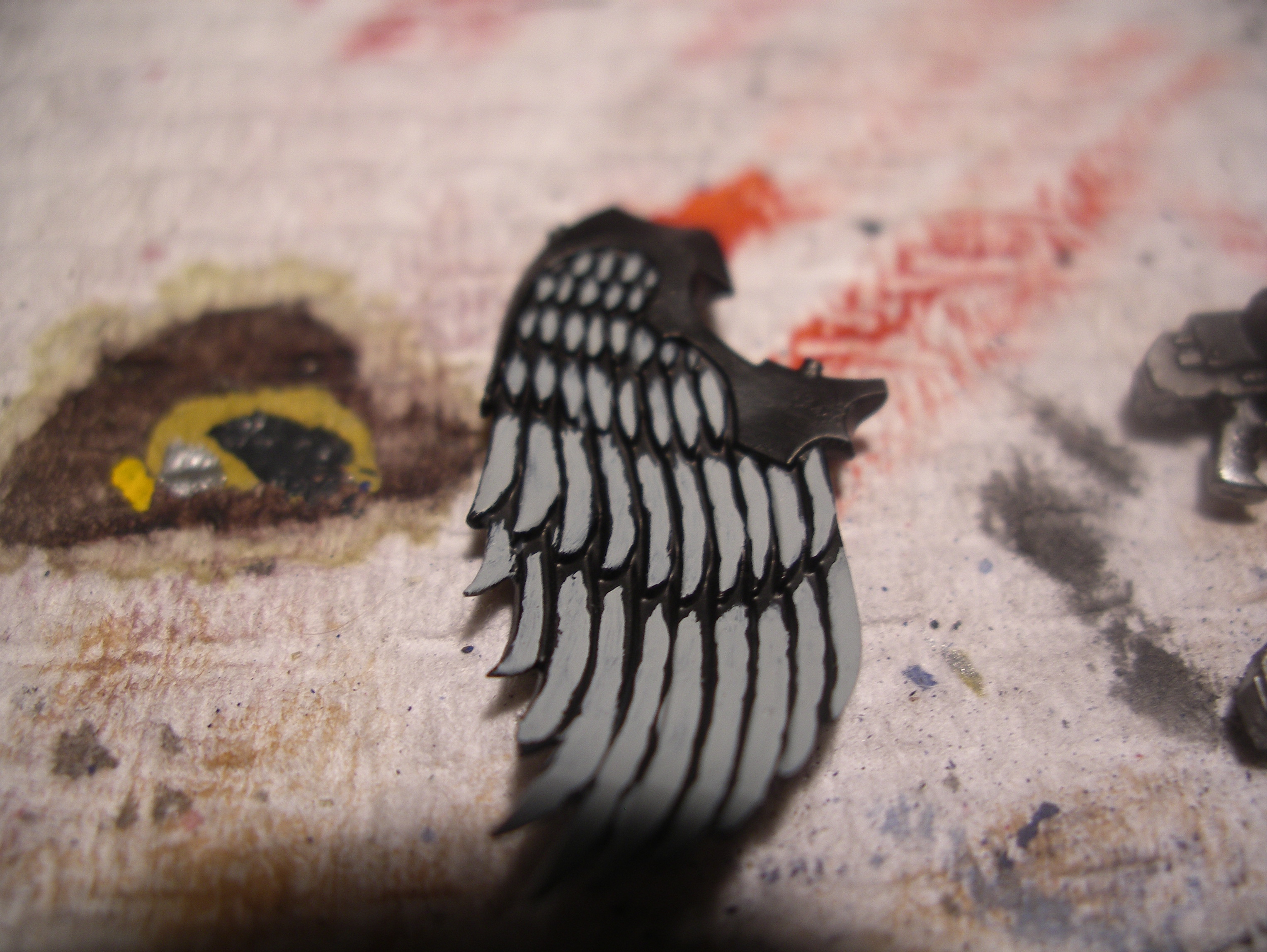 I did some work on 4 winged shoulder pads in anticipation for the command squad, but they didnt fit on the minis, and they didn't look to good. I'll use 'em for something else. They took alot of time so I have to use them somewhere!  (pics below)