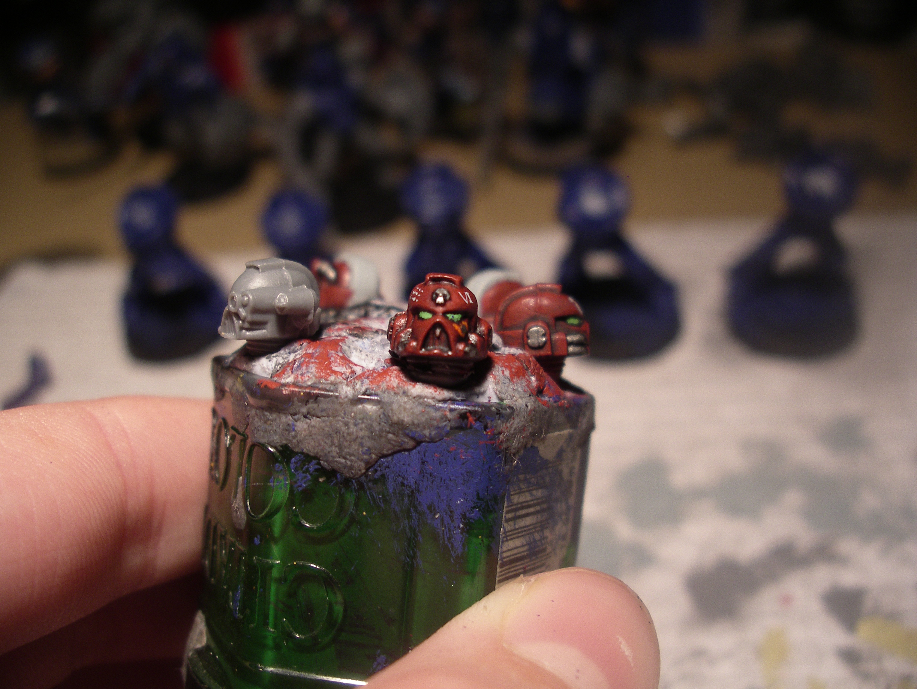 I finished the last of the veterans helmets today. Sorry I couldn't do much, i basecoated the 2 tac squad sgts, but theres not much point posting pics of that