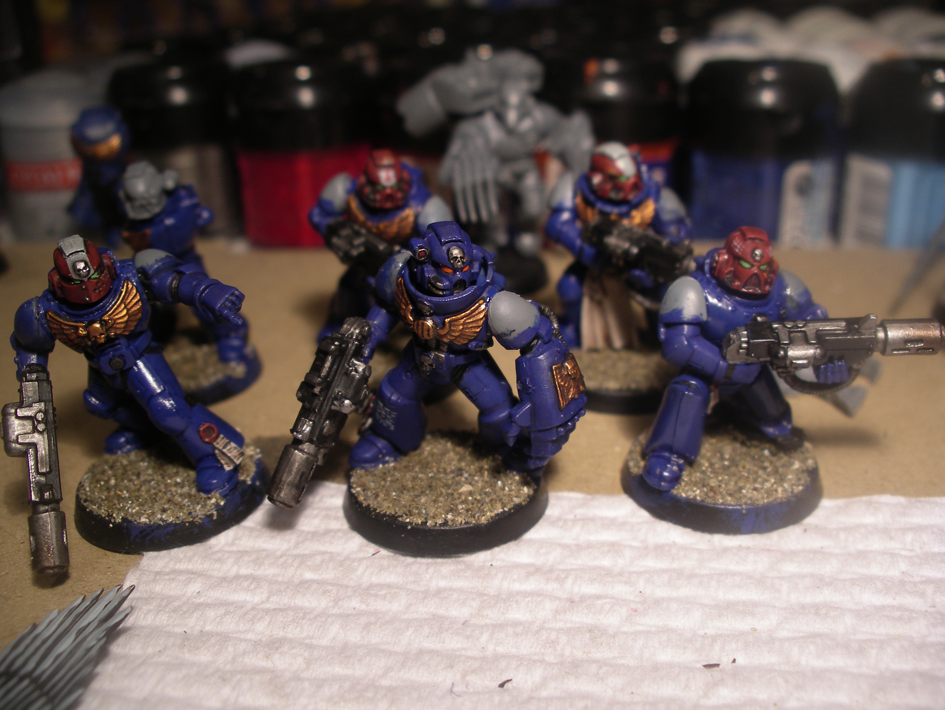 Well, lipsanpips, nice stuff, jawa's fists are looking good and your lightning effect on captain number 1 is executed well, I also like your kneeling libby. great work so far you obviously have a passion for the space marines...keep going