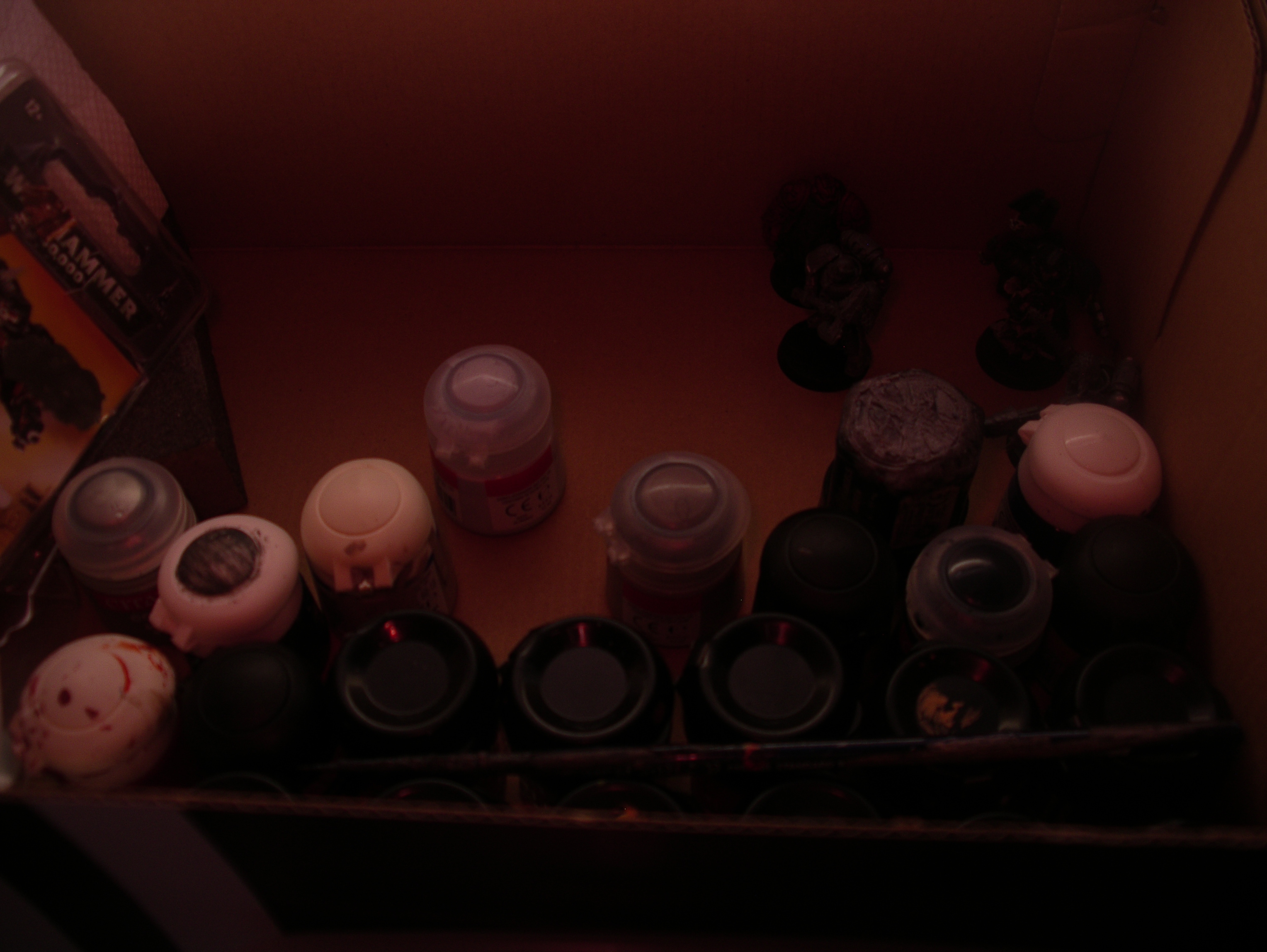 But yes, what have I been working on? I searched deep into the bowels of my boxes and found some of the old Tau I had, we bought a battleforce a while back. I managed to find 2 unpainted fire warriors and have started to paint one as the traditional Tau colour scheme (the sandy one) and so far its coming out ok, just takes layer after layer to get it uniform, that's all. I also did some detailing on the Land Raider, but it still has alot of work to be done, so without further ado, I present to you, the pictures: