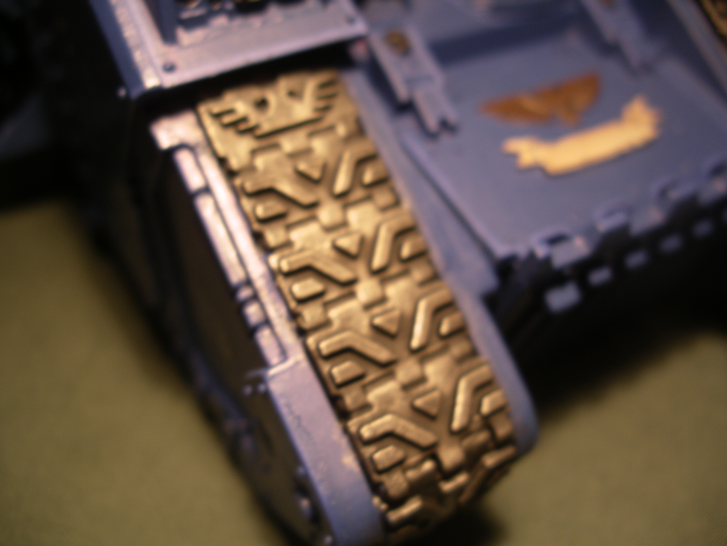 I'll try to get some pictures up tonight or tomorrow. Thus far I've got the entire hull painted up to the blue stage and the top has been highlighted. It's taking much longer then I thought! I've been working quite long and hard, but will increase my output  . Since this is my first proper tank, (after experiences with old rhinos where washes looked horrible, and things generally went wrong) I decided that I wouldn't wash this tank, making the task longer still! I've had to paint wash into all the recesses individually which took a while, but worry not, for it's all done, all I have to do is highlight the sides, and i've done all the large flat work that i'm not so good at, then detailing which hopefully wont take too long, and i'll hopefully have the finished product up on the blog anytime between Wednesday and Sunday (depending on how inspired I feel throughout the week.)