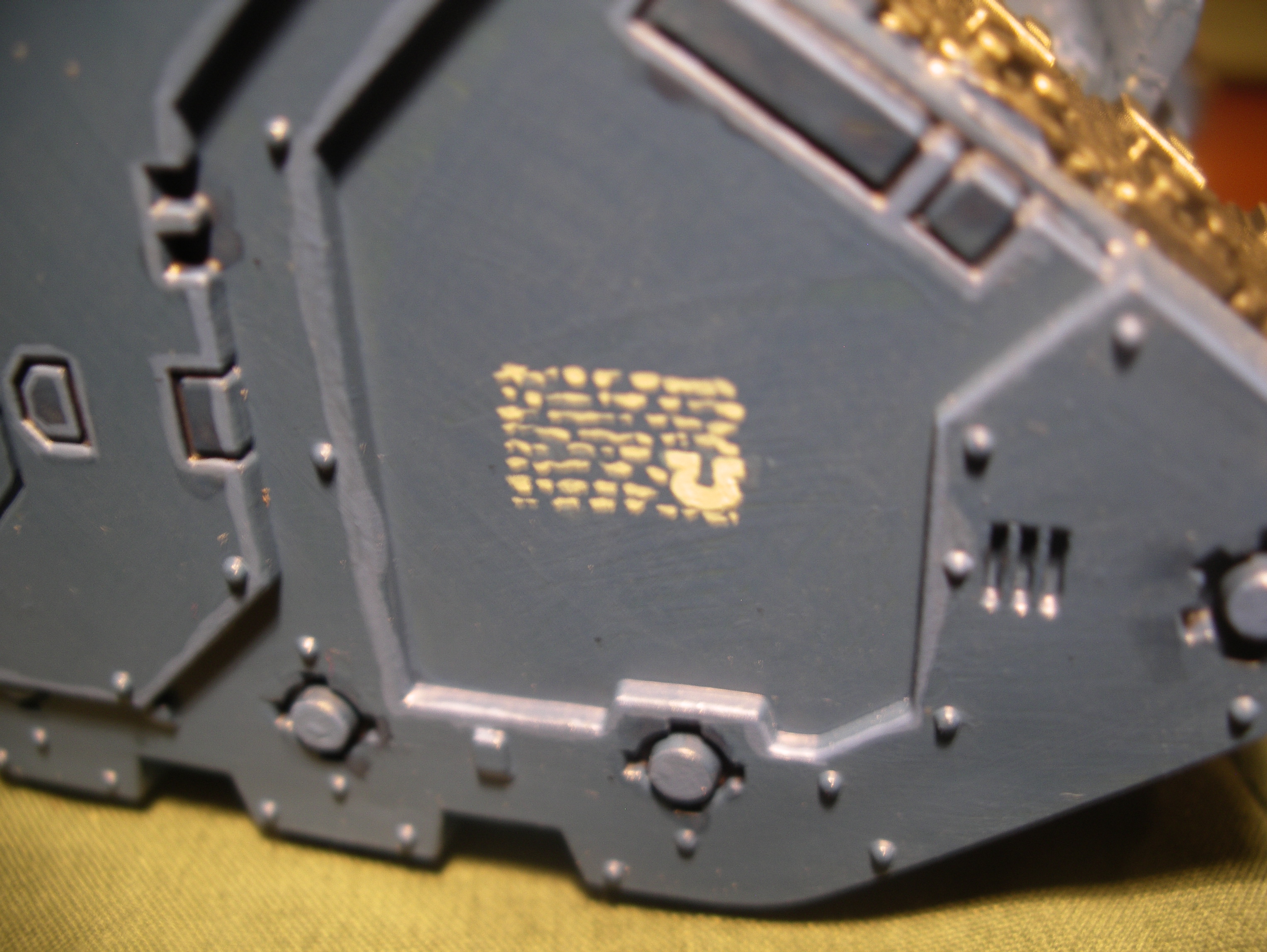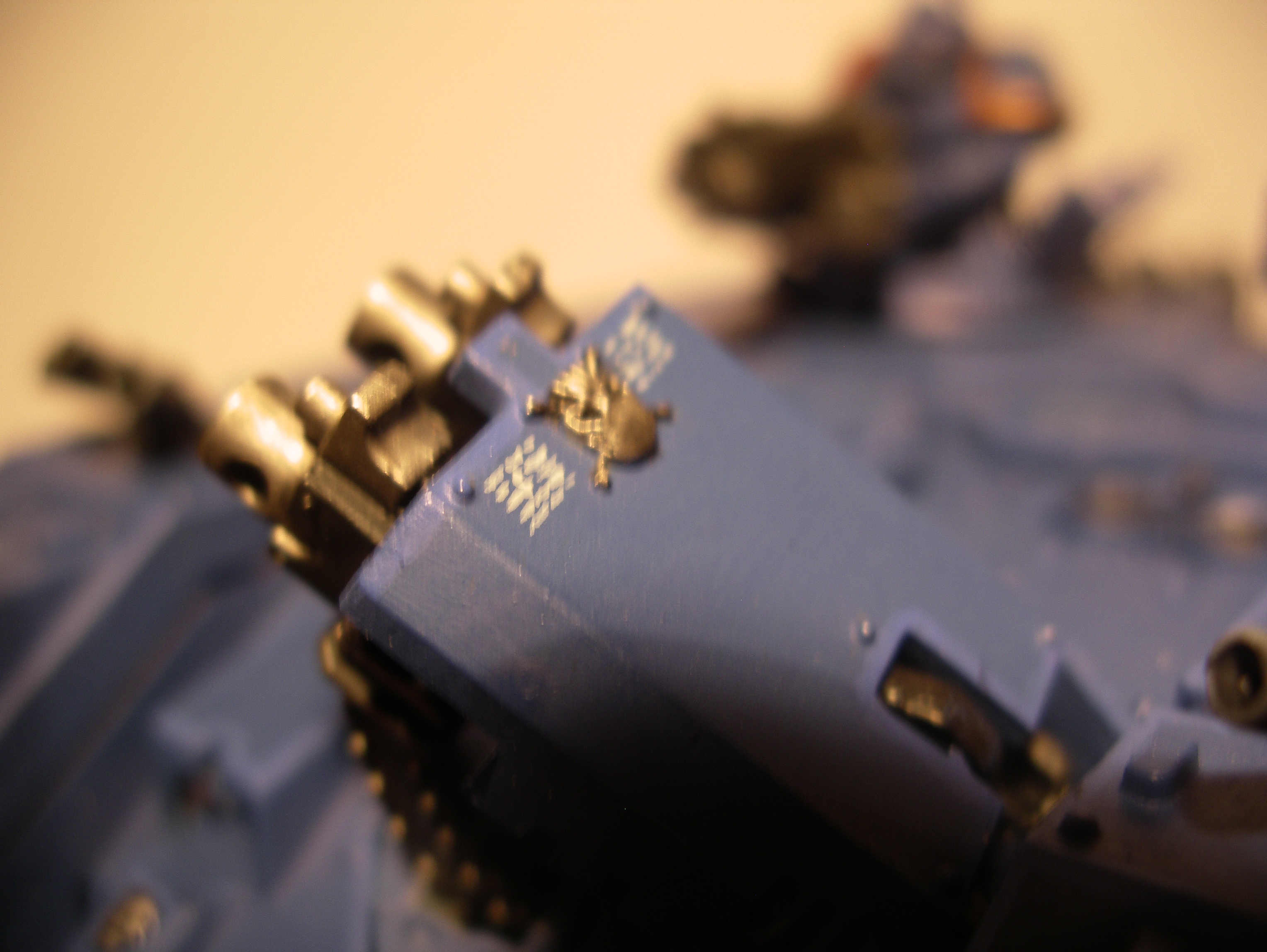 Can't say i'm a fan of the liberal sprinkling of other Chapter's iconography throughout. By all means use the BA and SW bits etc. but remove the blood drops and stuff, it just detracts from the integrity of the army IMO.