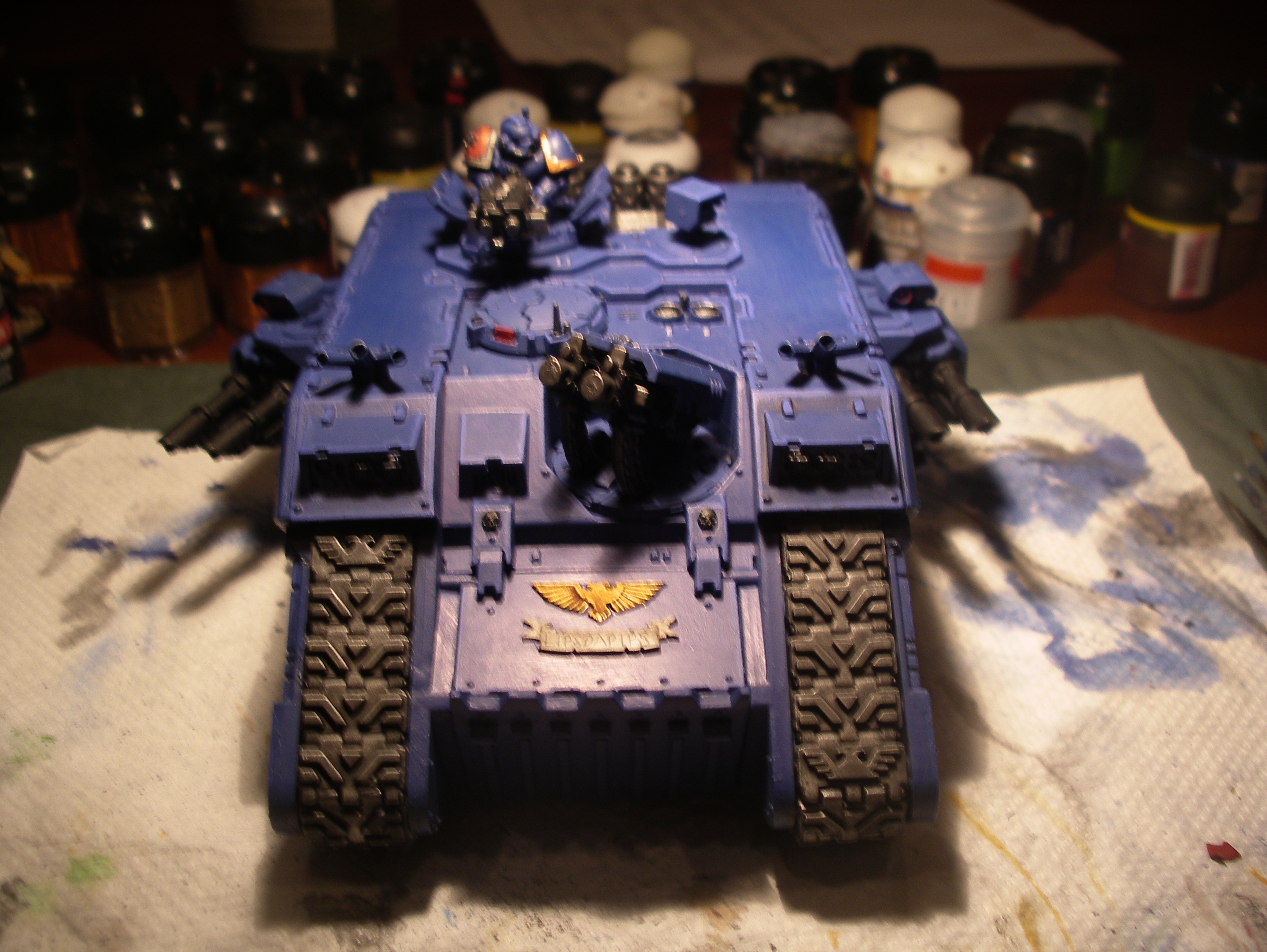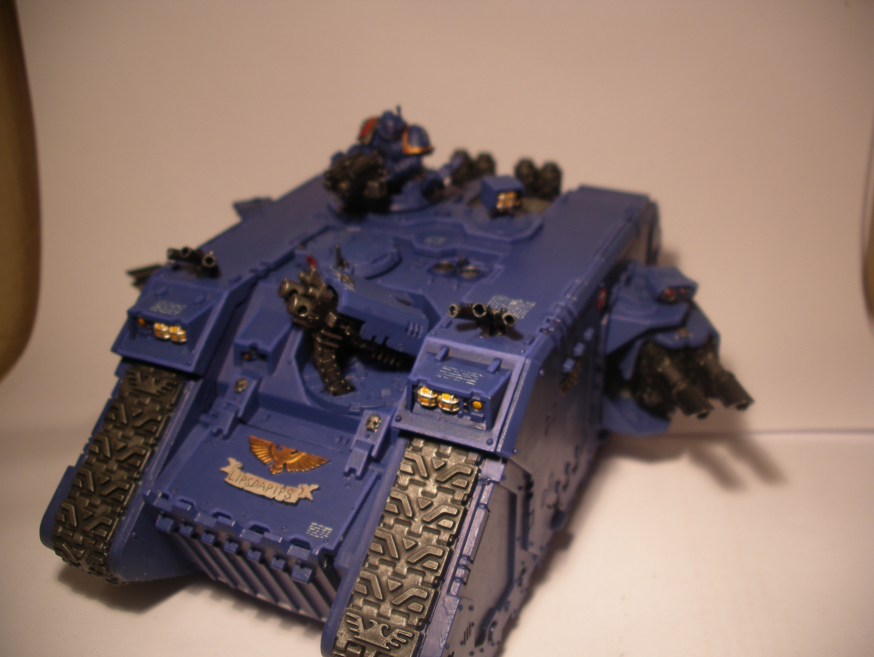 WOOOOOOHOOOOOOOOO! I finished it! Yayyy! This is what's so wonderful about the hobby, admiring the finished product. I love how my tau came out, it really shows that it is the base that completes the models, looks entirely different to an unbased mini, for sure. I finished my Land Raider! (finally). I'm proud of the marines shoulder pad and some of the wrinting etc, overall, for my first tank, I think it came out ok.