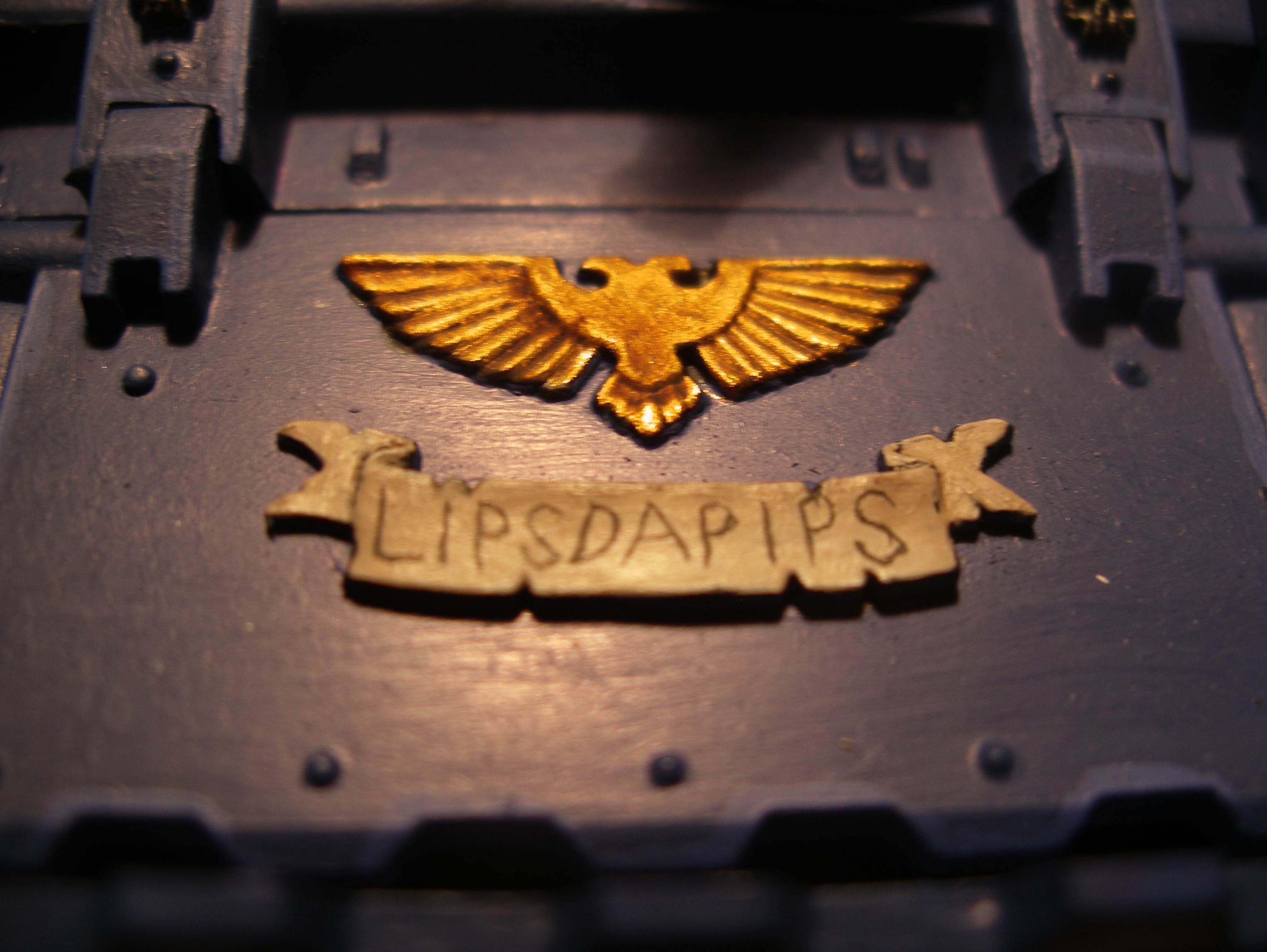 Hey all! Sorry to say I did fall asleep on Sunday for 5 and a half hours, and couldn't get any work done, but hey, It's monday! And i've done plenty! So nearly finished with this beast of a tank and should have it DONE AND FINISHED AND COMPLETED AND CONCLUDED AND READY FOR TOMORROW! (Phew, took long enough!). But in all honesty, without trying to sound cocky, I must say what what is my first (will be) completed tank, my personal reflection would say that I feel i've done fantastically, but i'll leave that to you guys to decide, enjoy! P.S You may notice that this is my personal command tank - written on it is 'lipsdapips'  I may have to make a captain Lipdapepus or something later down the line to represent me and what I enjoy in game, I think that would be a heap of fun LDP