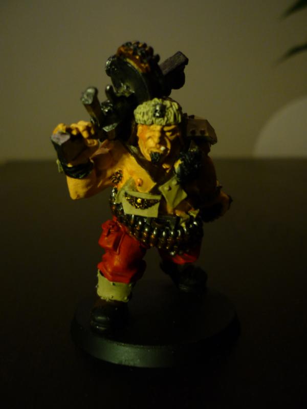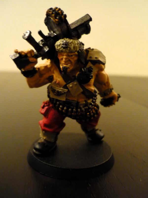 @Viktor - the modeling was simple just lifting of the arm and moving the left hand (which you can see up more ) so he looked tank ...holding up a hvy bolter !!!! like a true Vostroyan !!!.