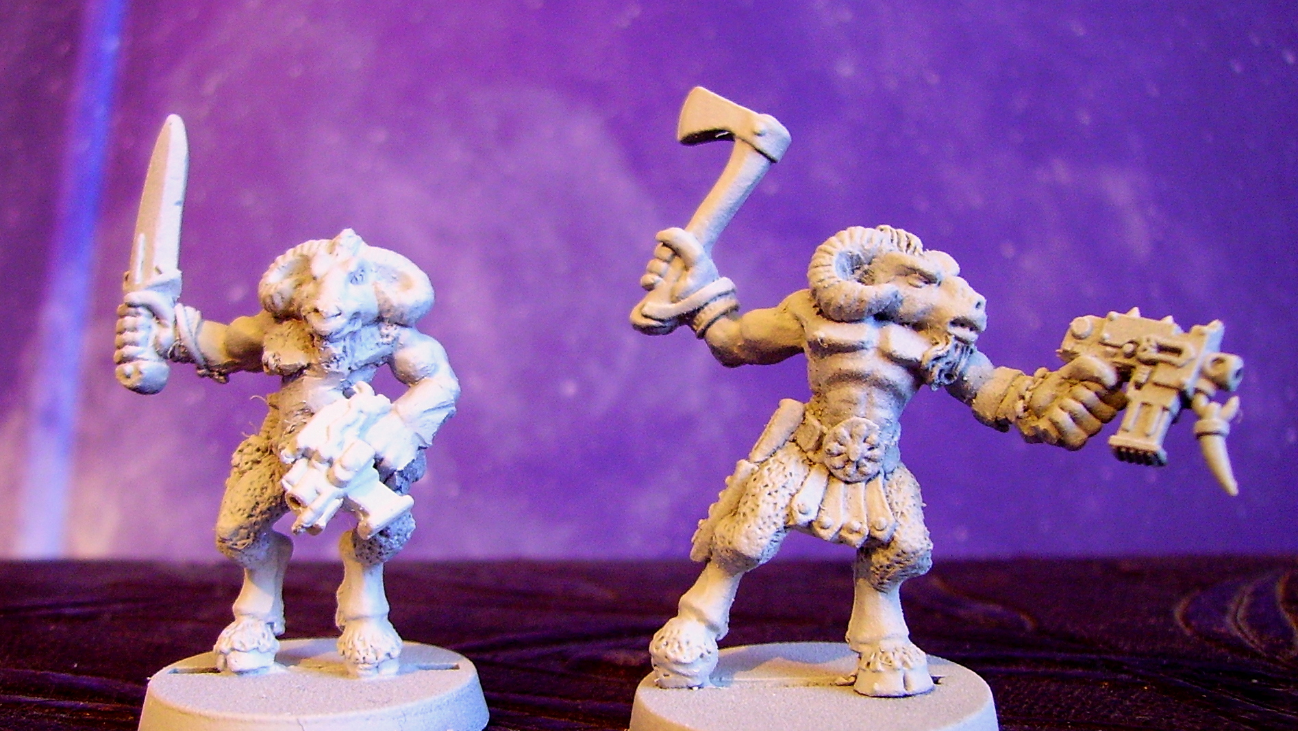 New things - more converted beastmen and RT space pirates!! - the dude with the big hair has a robot arm and what looks like a mutated leg - I like him. Painting will commence dreckly...