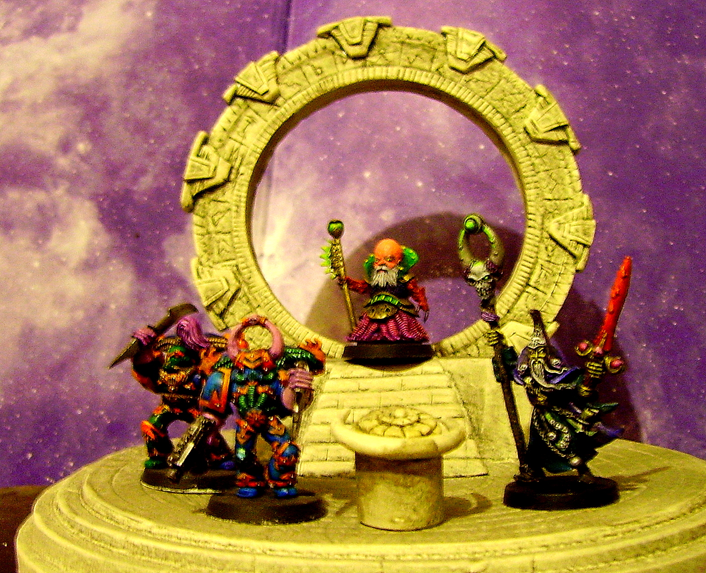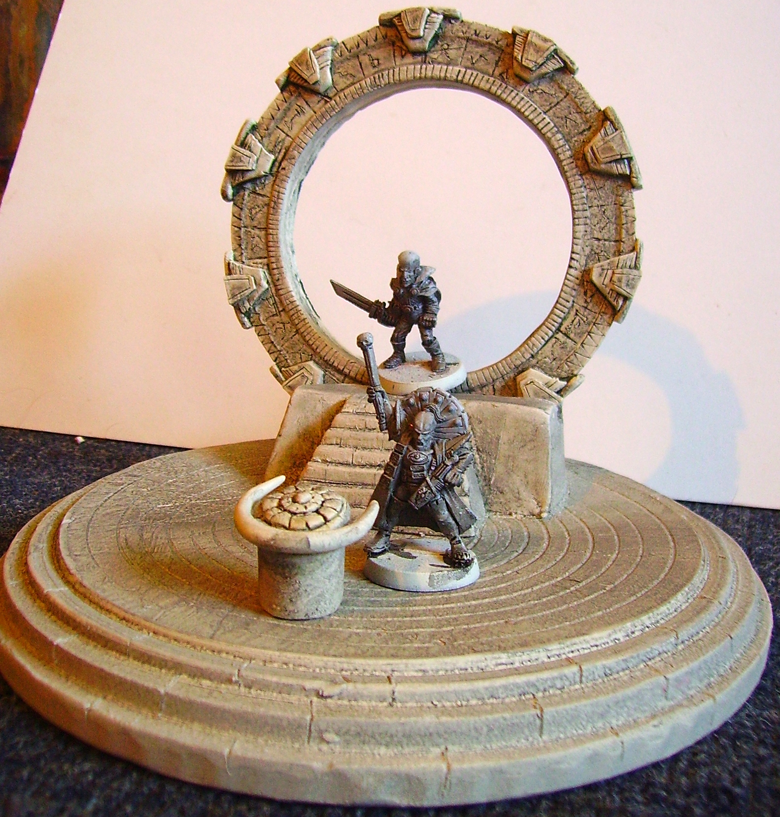 Cool. The scale of the gate could have been just a tiny bit bigger but otherwise it looks good with the minis. Its hard to get that kind of thing perfect as the clay shrinks a bit when fired.