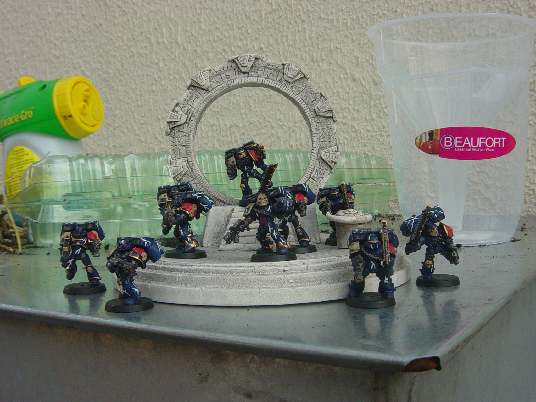 ha ha ha , i was just talking to bailey about that space crusade advert , i must show him it! i spent wa to many nights playing that game , i loved the docking boards that came with it and hated the nasty 3d board that always ripped and fell down. the stargate ring with those CSM look really good. and that bunch of RTCSM's look great too. those old space marine backpacks are fantastic , i have just enough my TSCSM forturnately .The nosie marine looks epic.