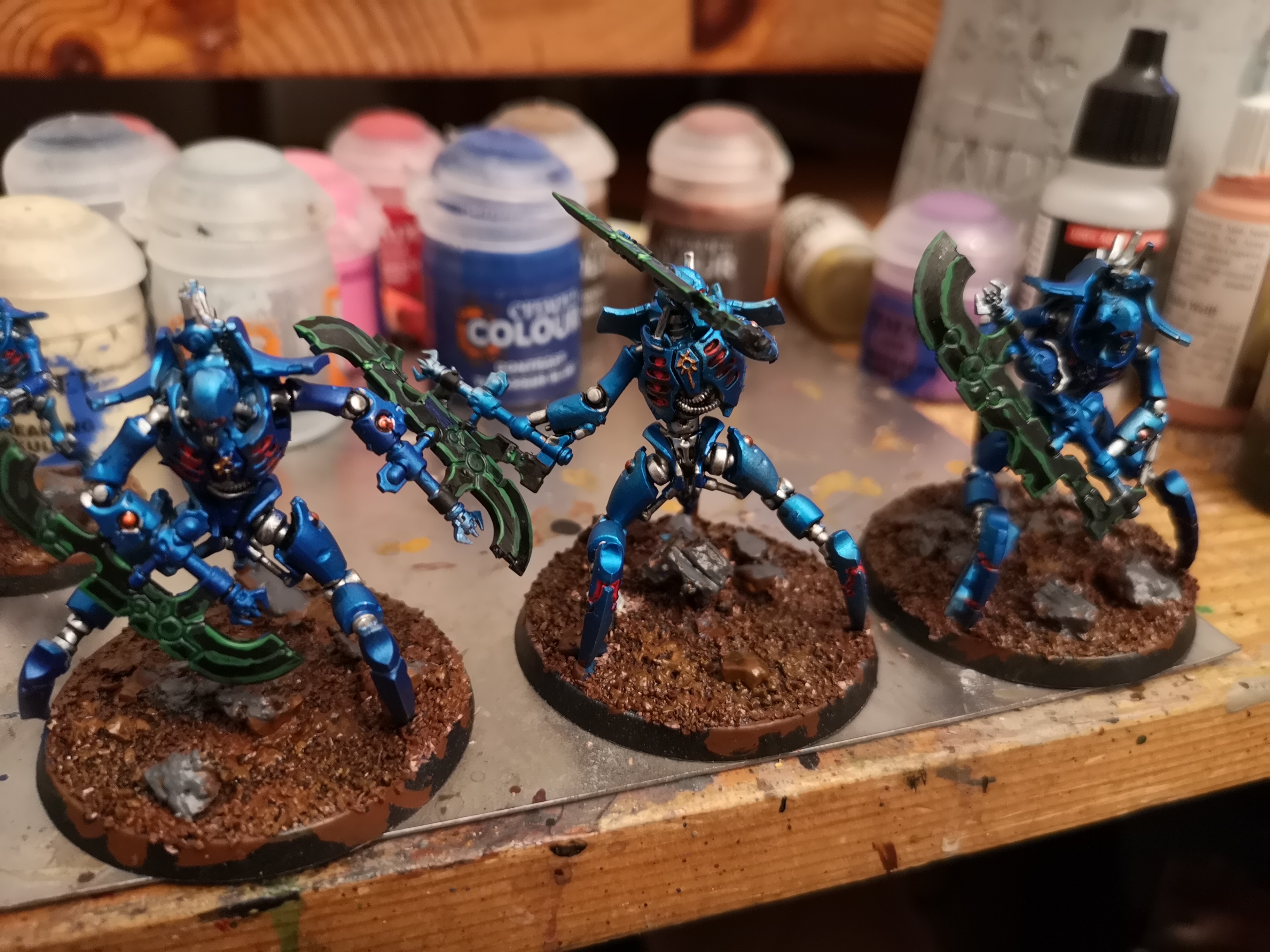 Painting my Custodes Allarus. Finished one to get a feel of them, now batch painting all 5 them at once. I would say about 60-65% done on all of them so it's going pretty smoothly! Without (too much) procrastination, I can have them done tomorrow!