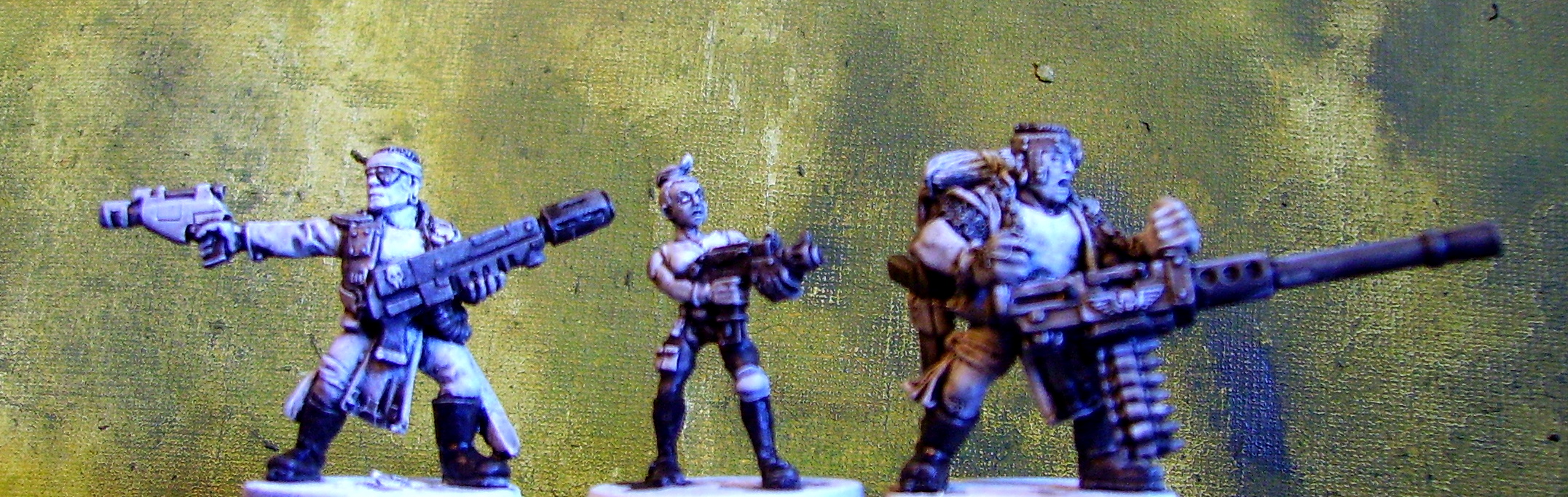 I was running low on a choice of asembled and undercoated minis to choose from so I did some more - militia, orlocks, chaos squats - a squat heavy with a D-gun? or is it plasma? And of course the atv - which I'm going to add the other riders to later for ease of painting