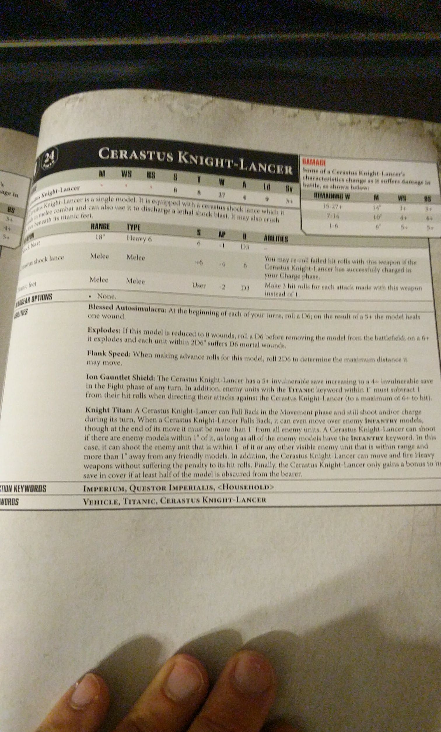 gungo wrote: You also can’t make your knight a warlord unless it’s a character. So 3 knights in a superheavy detachment and 6 armigers in another 2 SH detachments. If that doesn’t work then you effectively killed knight armies.