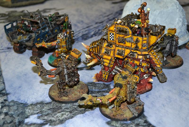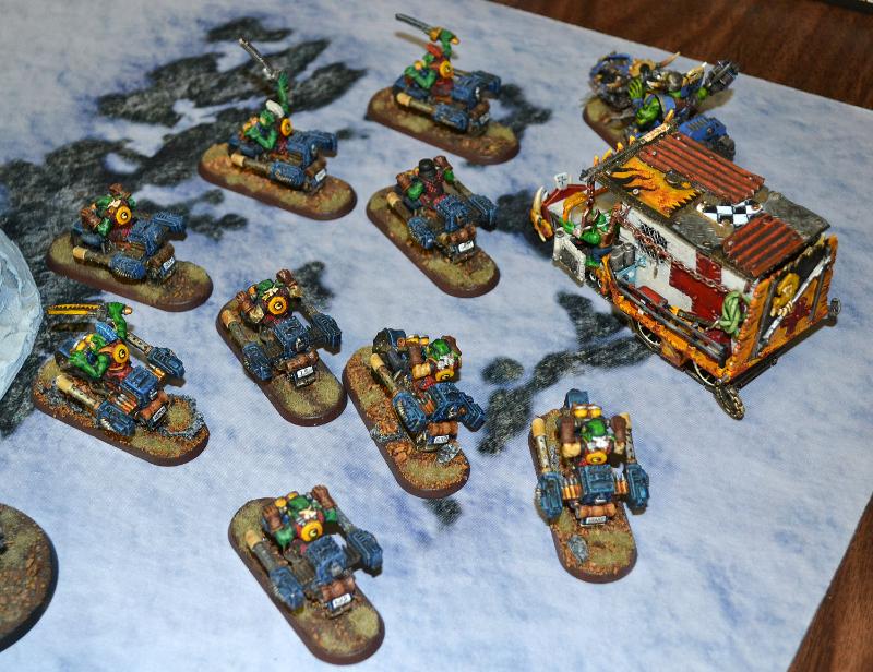 My army was fluffy and not the least bit competitive. I did have a 5-man nob bike unit (that's including the boss) & a dakka jet, but that's where the good units ended. Regular bikes, grot tanks, shoota boys, some kans, a dread and a KFF mek.