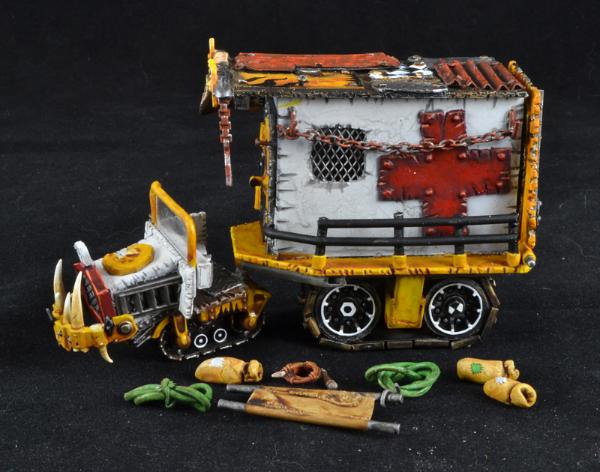 Good idea, and nice paintjob on it. I like the white on the wheels, looks really surprising for an ork vehicle, and that's why it looks so good.