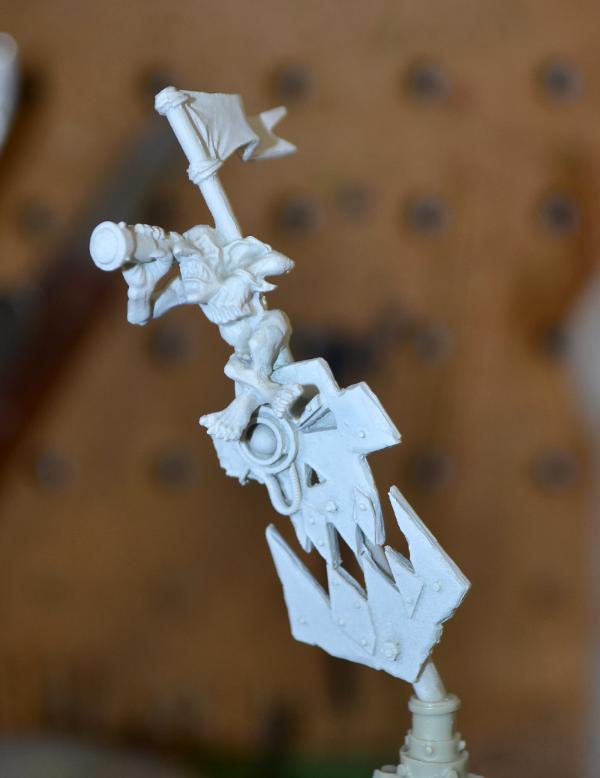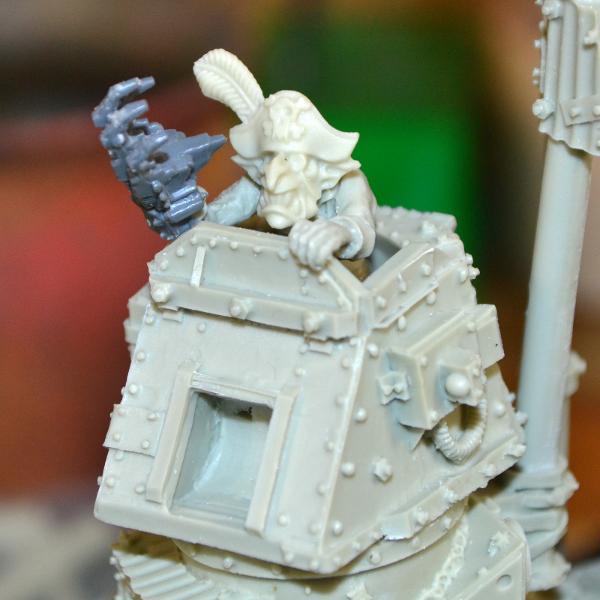 First... the Captain. I figure a grot rich enough to have his own battleship is more than rich enough to have a grotty PK. This is, in effect... the grot version of the IG tank commander classic... "Drive closer so I can hit them with my sword!"