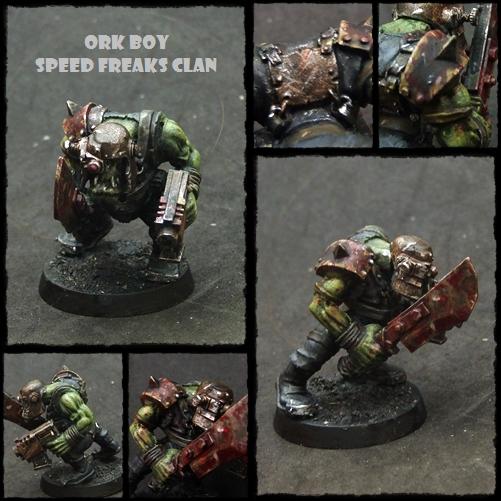 And an Ork boy I painted up on a whim, really couldn't get a nice front-on shot of him but I reckon he looks the part. Particularly pleased with the metallics, it seems ages of pouring over Jan and Damo's metallic work is maybe starting to pay off! Will do a couple more of these when I get time.