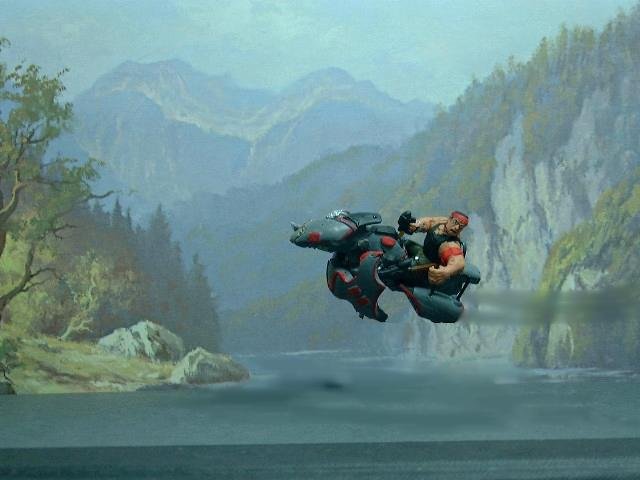 Figure are superimposed on a background and blended in with Paint Shop Pro. The Las fire could have been done better. I have them and others posted at webshots.com under heavyoxide. I lost my disk with the original art work so the only ones available are the one at webshots. Unfortunately these are low quality but you get the idea. Enjoy.