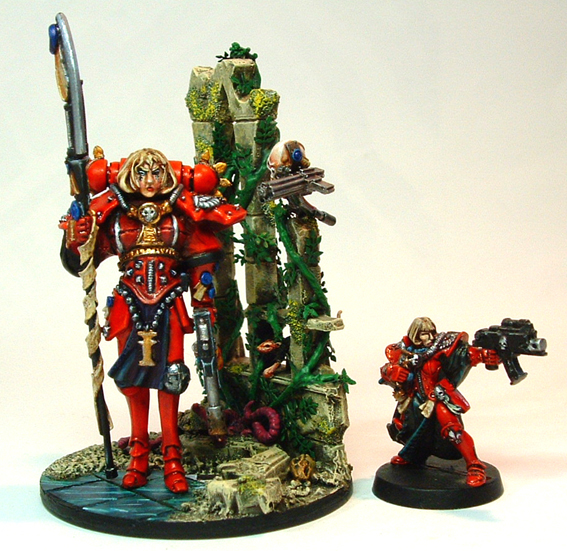 Hehe thanks  I have been trying to really get the girls looking like girls, not transvestites. I will get around to posting the rest... I have been largely successfull, though the Inquisitor looks a little like Laurel from Laurel and Hardy. Black eyebrows were a BAD idea. The Barbie Dream Rhino is a friend of mine's named Death Quaker. She is a really good painter, I just don't know how I feel about her color pallette I did a lot of freehand work on her cloak too, you just can't see it in this pic.