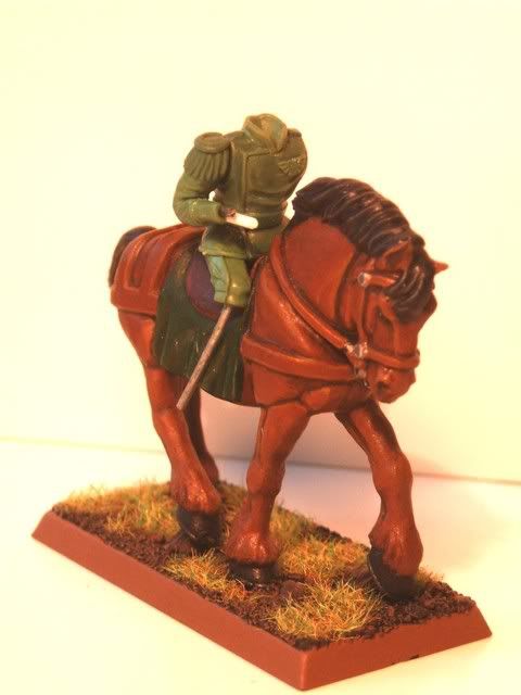 Absolutely love that model. It's great to see such a dynamic pose, when all the cav models GW makes look like they've got a rod shoved up their... err, saddles. Great work on it! I'll leave the color tips to the other paint wizards