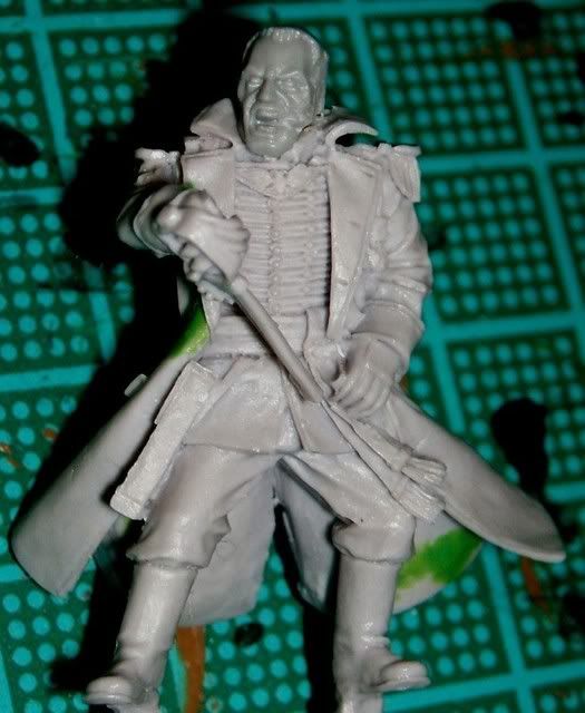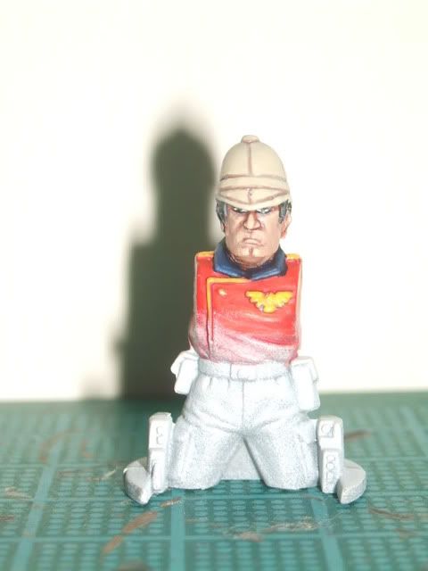 Secondly here's dilemma for me, I've started work converting the Death Korps Commissar drawing his sword, turning it into one Colonel Gravis, Regimental Commander of the Praetorian 4th, I've not done much so far, simply doing a head swap, and removing the breathing appartus (the arm is only attached with bluetak for the moment), I've found myself becomming rather fond of him with a bare head though, do you think I should add a Pith Helmet, either on the head, on the base or not at all?