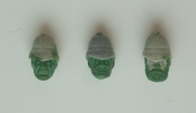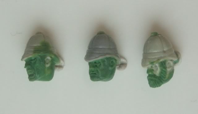 Work on a pith helmetted head sprue is underway proper, this is an early WIP version, no jaw or mouth(!), it's actually had quite a few changes to it now, I was'nt happy with the left eye or the original mouth which I did after this picture so both are changed now, I'll get some more pics of that soon. The helmet meanwhile is a cast of a single master that I'll be using for all the heads on the sprue.