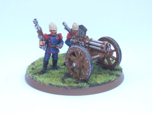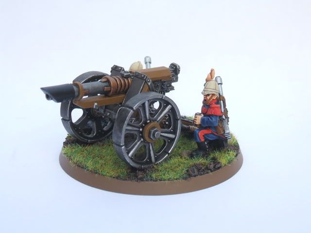 Viktor, as mentioned arms are on the way, which will just leave you short on legs, I will do though, but it may be a little while. The next few releases will probably be the heads, arms and a Gatling Gun with carriage and wheels, the later a work in progress of which is below, which I commissioned, will also be available seperately. There are other things also in the works though.