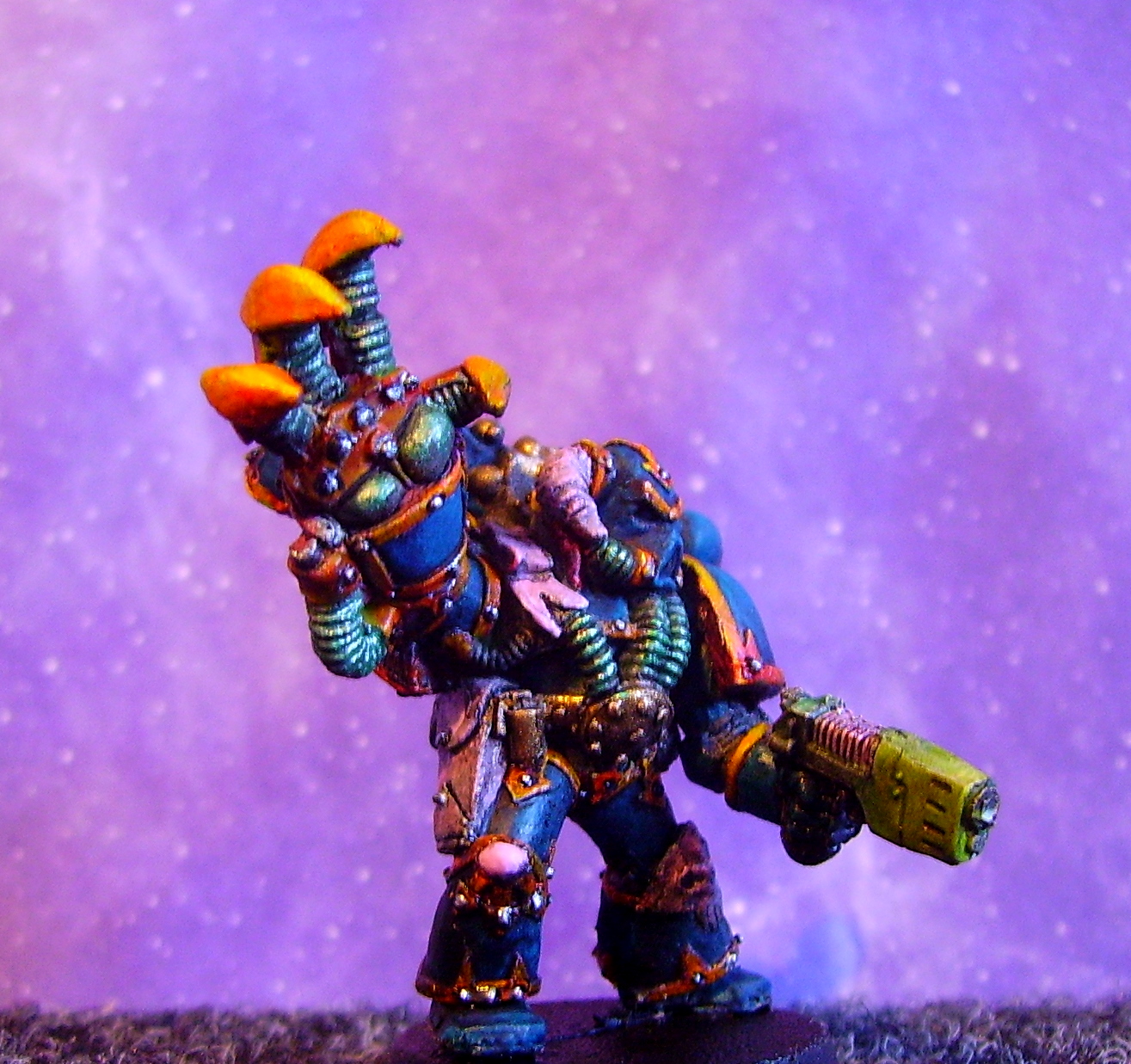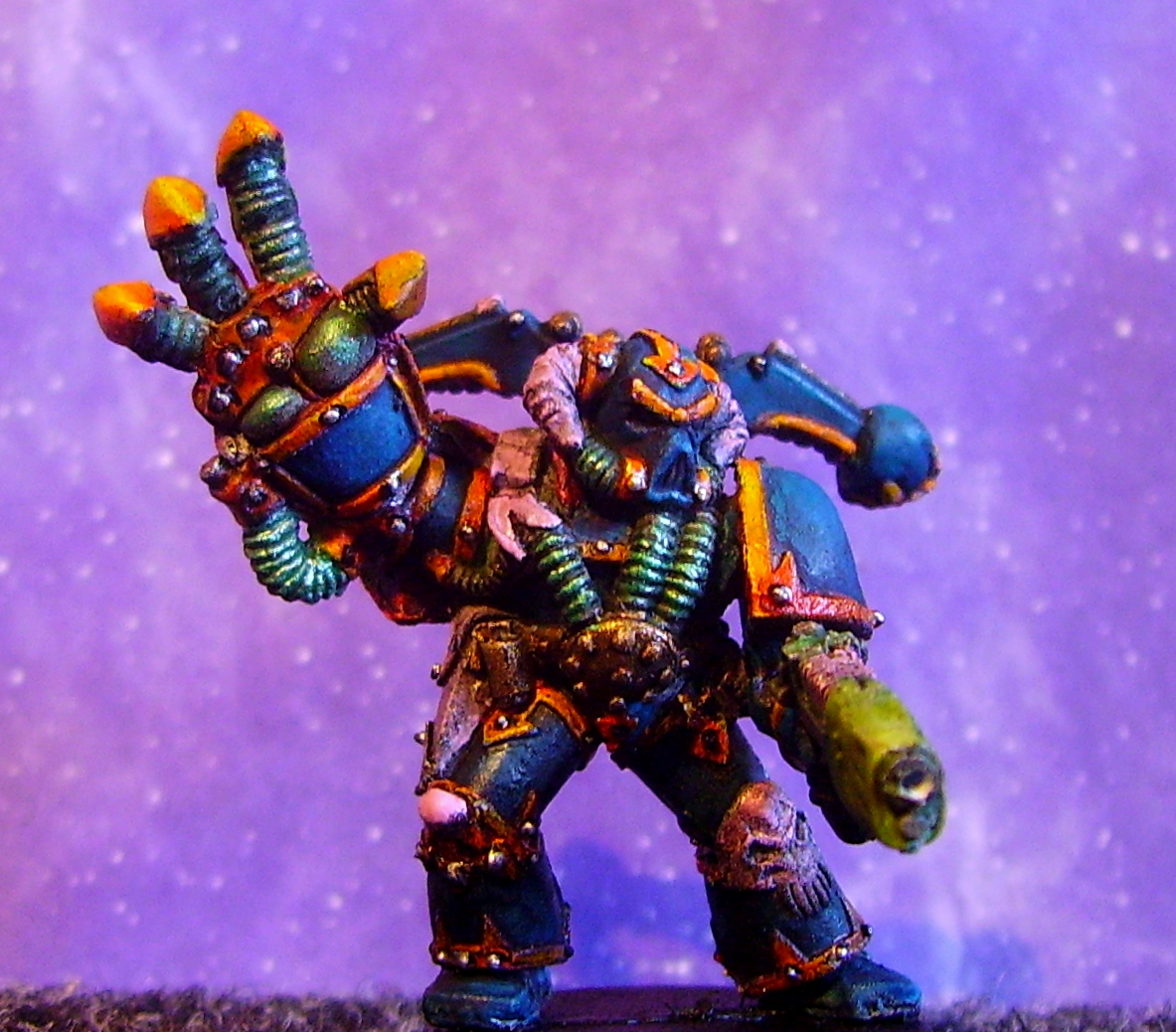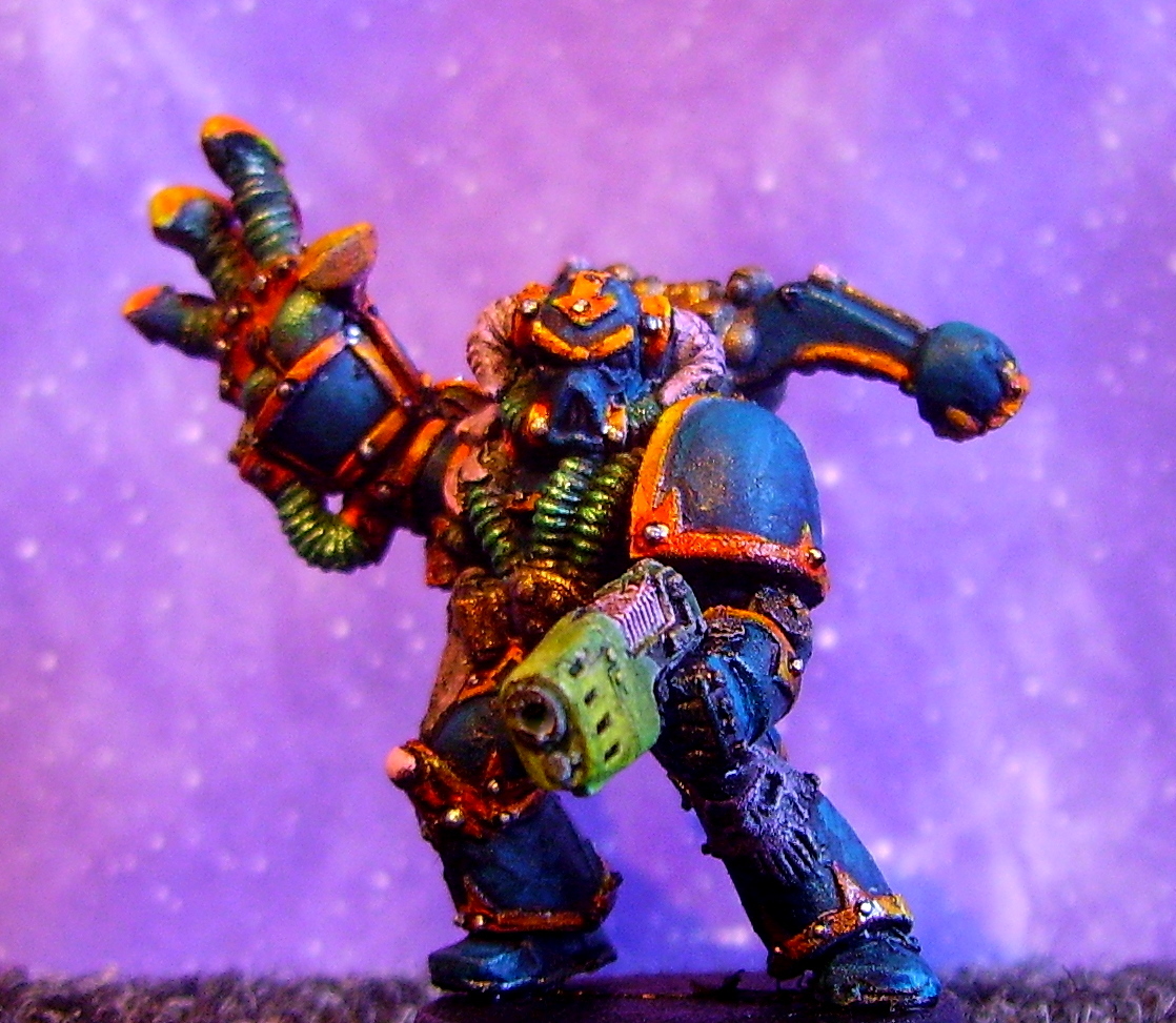weetyskemian44 wrote:s my latest marine - with massive claws! He is a little bit country and a little bit rock and roll. I'm saying he is a slaneesh marine but feel free to disagree. He has got saterday night fever and a bad case of the funk. He is desperately trying to find a club with UV lights and a strobe. He has just double dropped...