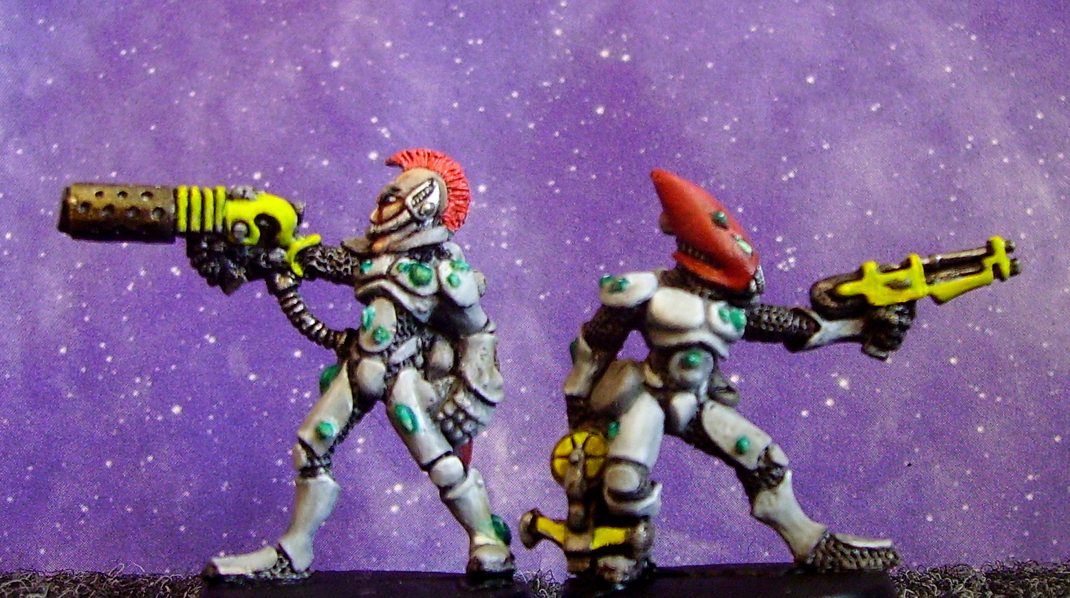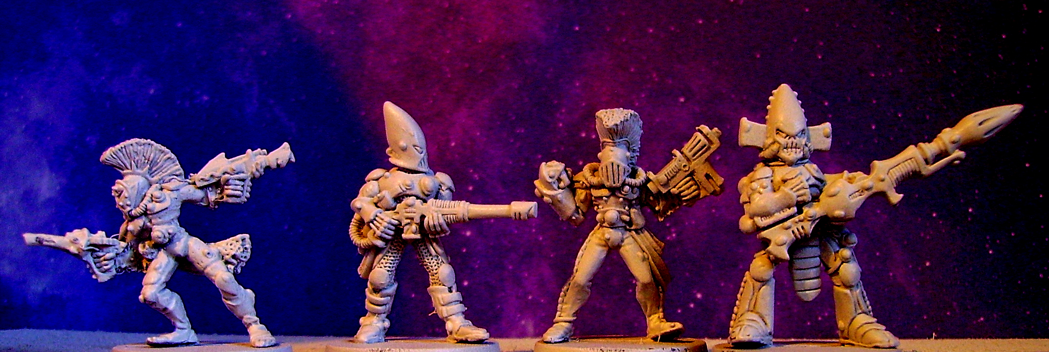 Those are RT/1st edition eldar. There were no such things as aspect warriors... just eldar troops. Back then they had missile launchers, las cannons, flamers, plasma guns, melta guns, power fists, etc.