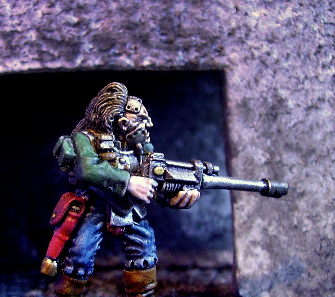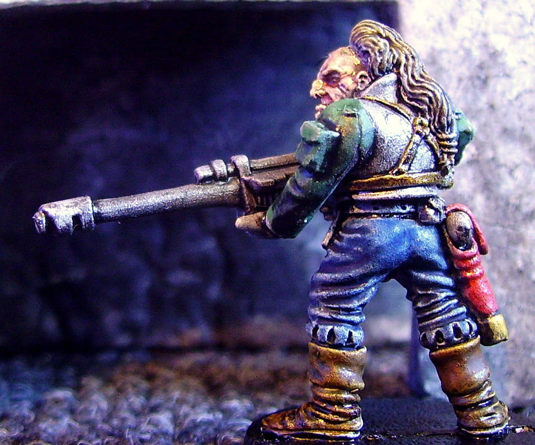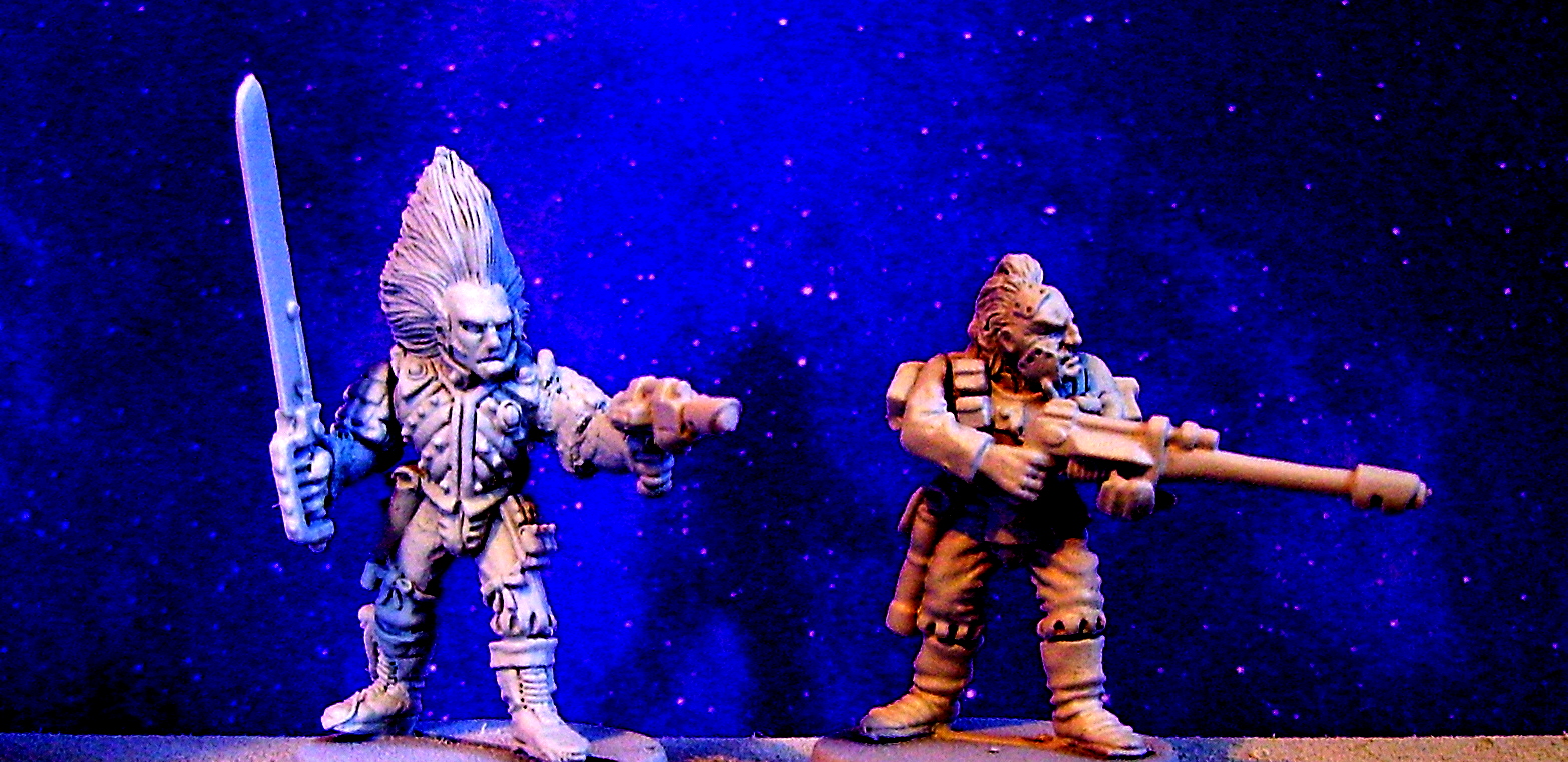The hunters were part of the releases aimed at Confrontation (the WD published rule set that turned into Necromunda), along with the various early gangers and scavvies. All of which I think hold up extremely well to today's minis. Figured the brat would be right up your alley.