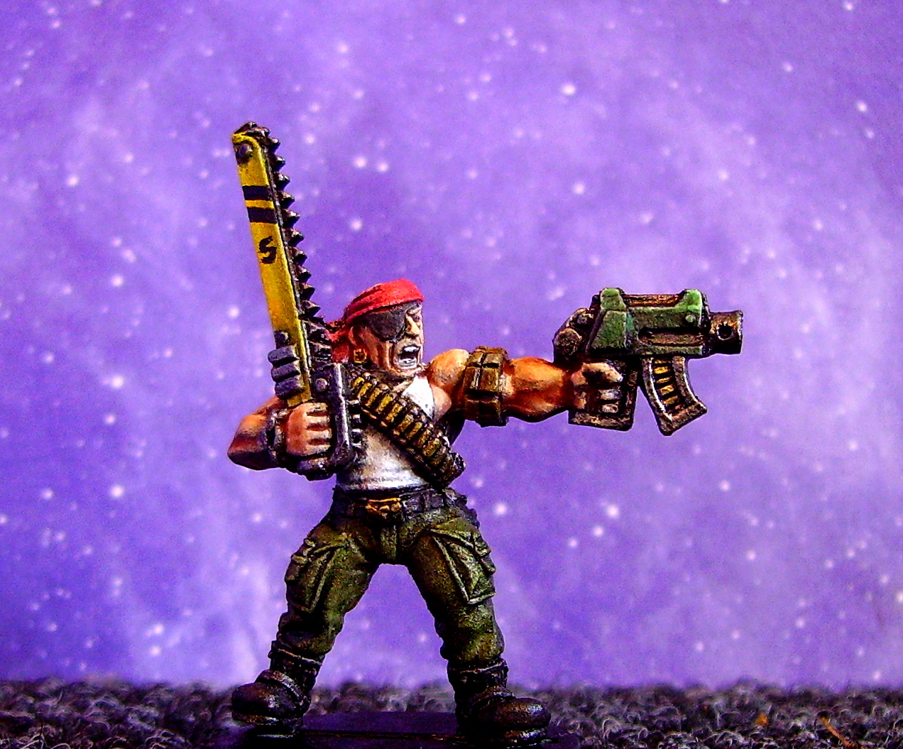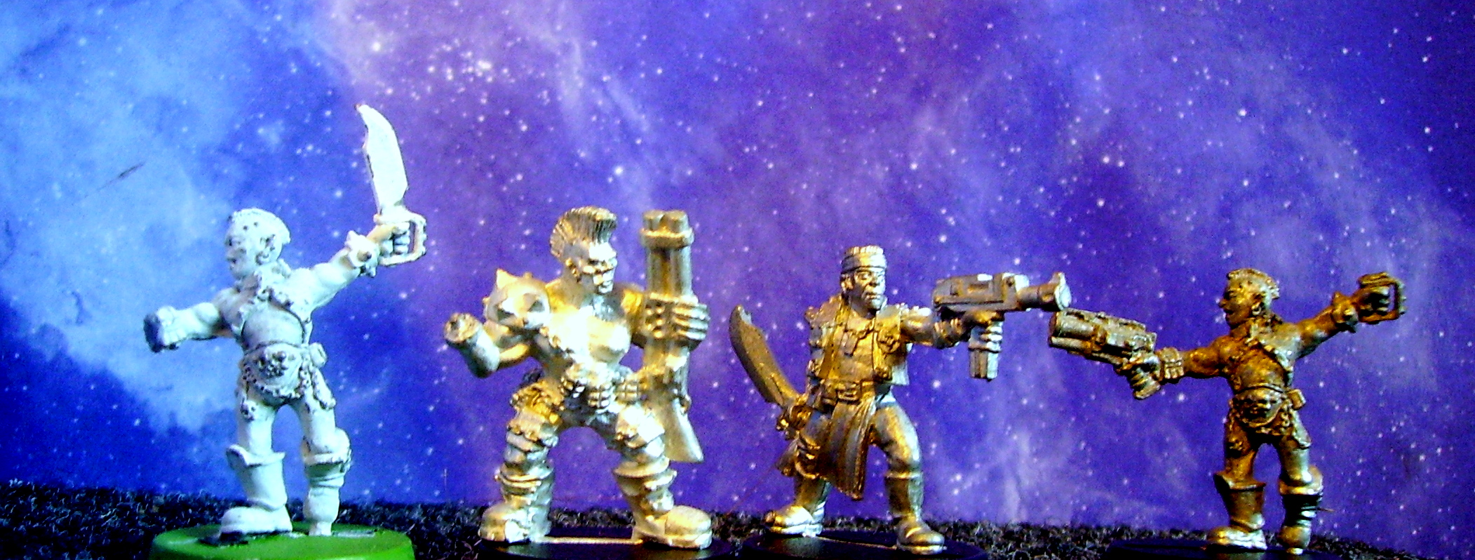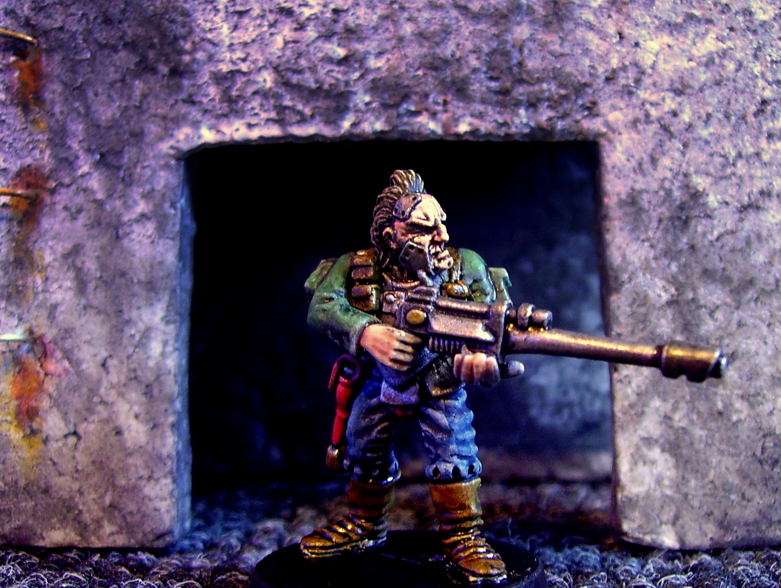 The hunters were part of the releases aimed at Confrontation (the WD published rule set that turned into Necromunda), along with the various early gangers and scavvies. All of which I think hold up extremely well to today's minis. Figured the brat would be right up your alley.
