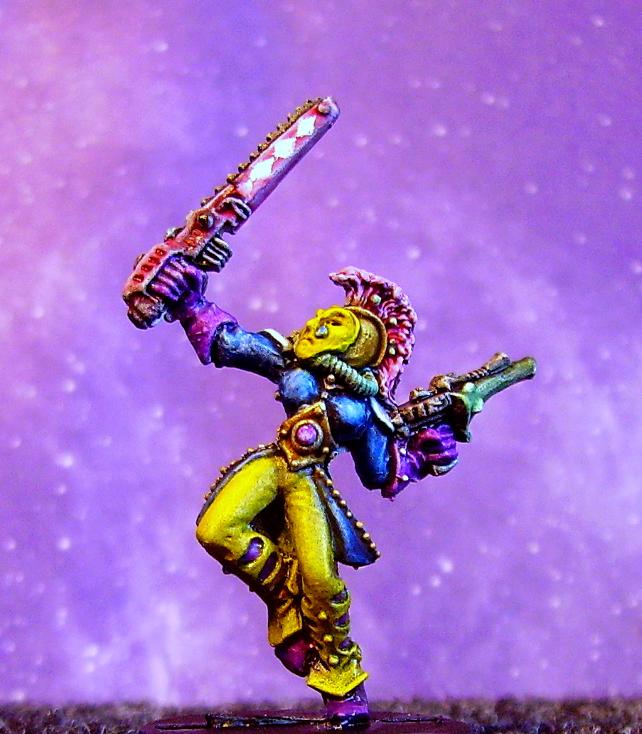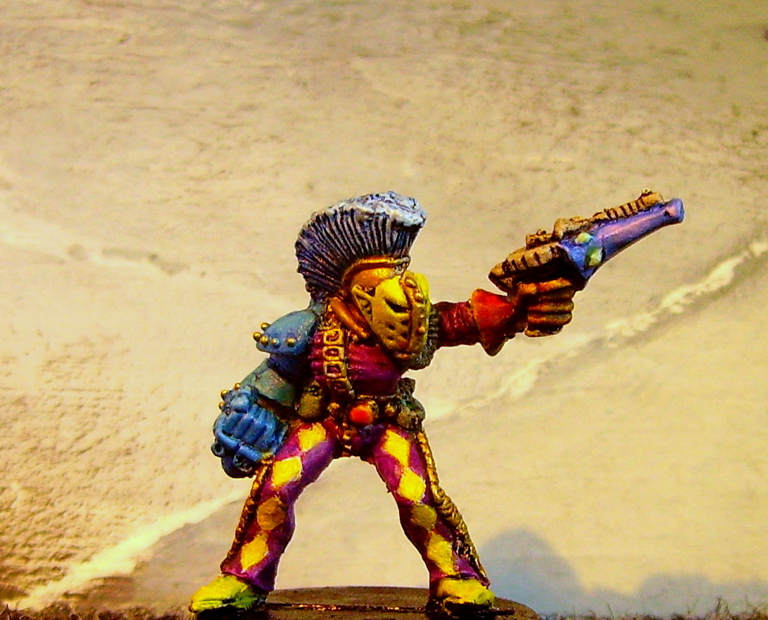 Gits those are some really old minis! Very rare specimens indeed. I like the yellow and black scheme. Really need some more old eldar - I might just have to buy some now