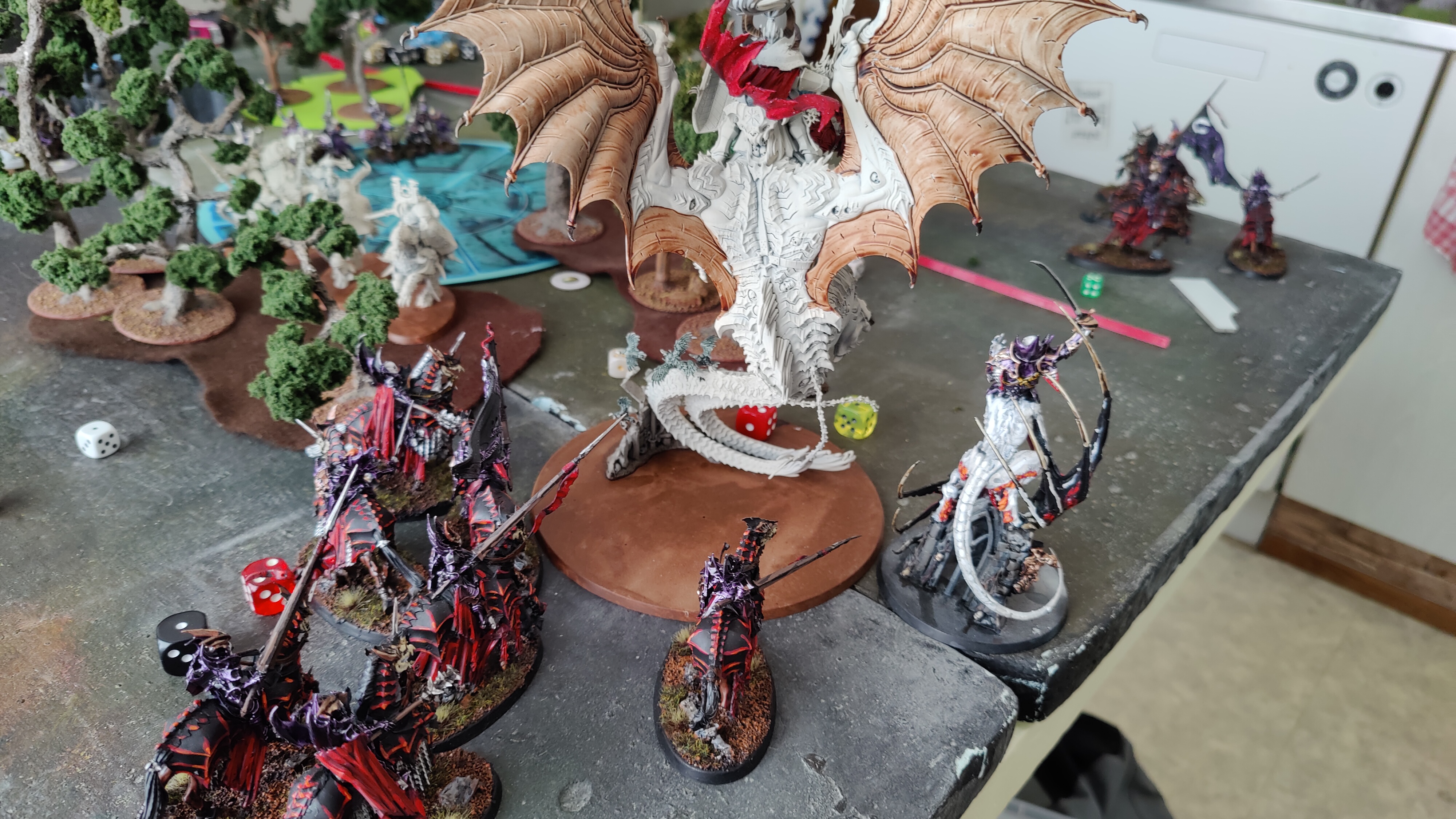 My Drukhari vs a whole bunch of little Chaos Knights.