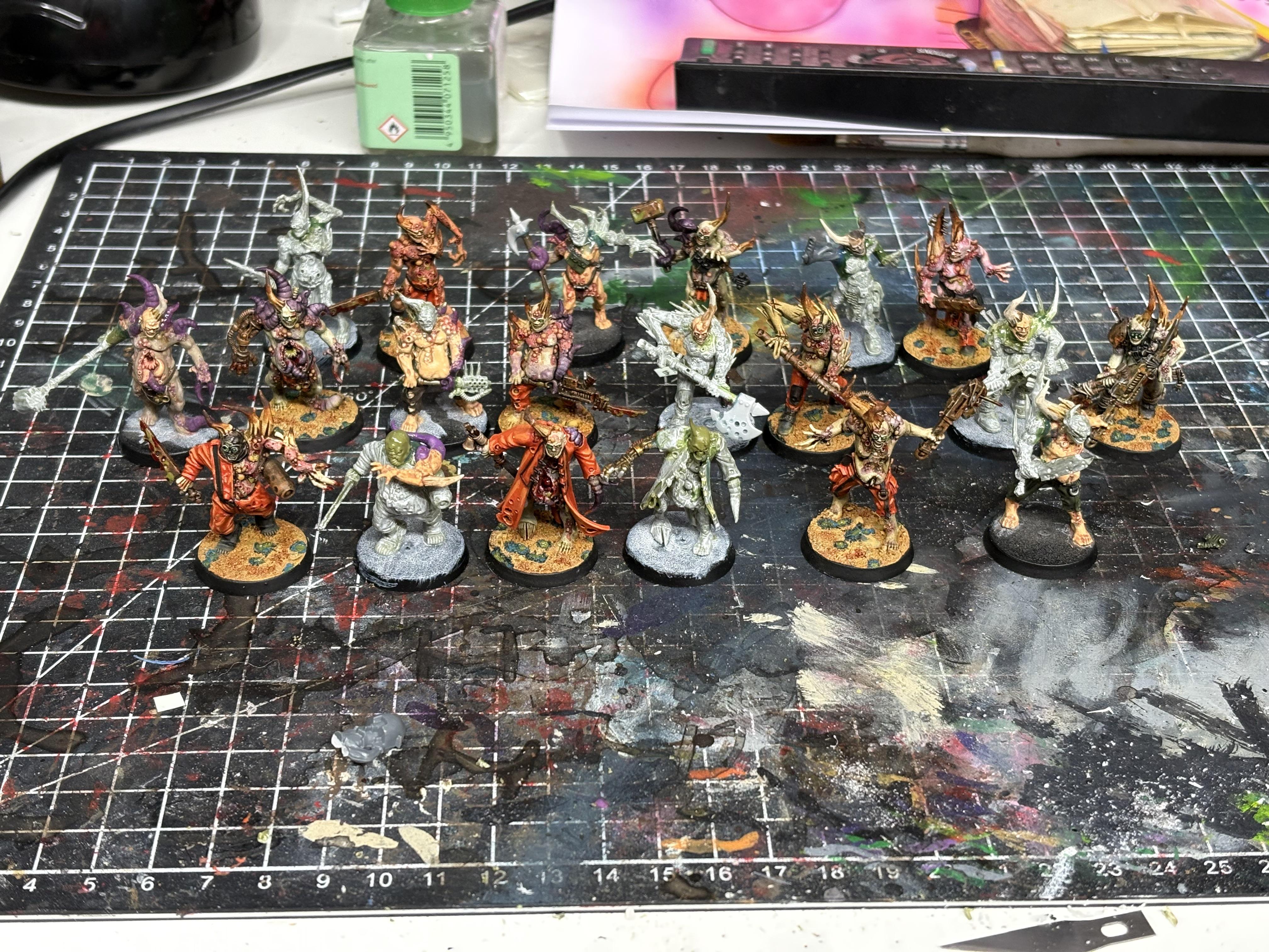 Well it’s been a busy couple of weeks or so of hobby. The tournament was a bit of a bust, W0,D1,L3. First game was against my usual opponent(@coleface40k), but I let his Nemesis Claw in too close and got absolutely smashed. Next game was against Kommandos where things went much better, but I still lost thanks to that surveillance grot whizzing about the board. That was probably the most fun game of the lot, plenty going on and it wasn’t over before it started. Next was the wooden spoon fight against a fellow Blooded player, that ended in a draw which I felt I should’ve won, but kept forgetting my buffs and Blooded tokens. Game 4 was against Legionaries, and a player that knew his team inside and out. Unsurprisingly that turned out to be a real flop and I got tabled. There were a few highlights and I got a few clarifications on rules that should help me in the futures. I think it’s fair to say that the Elite teams really have an advantage with their 3APL and the Astartea shoot/fight twice ability makes things really tough. I’ve bought a sheet of the legit Blooded tokens so I should have a fighting chance of remembering buffs a little more. The last player I played also laid out all of his cards and used tokens to help him remember what was what, so I should try that next time as well. Saying that we have a few new players this week at our little work club so we’ll probably be playing a paired down rule set again.