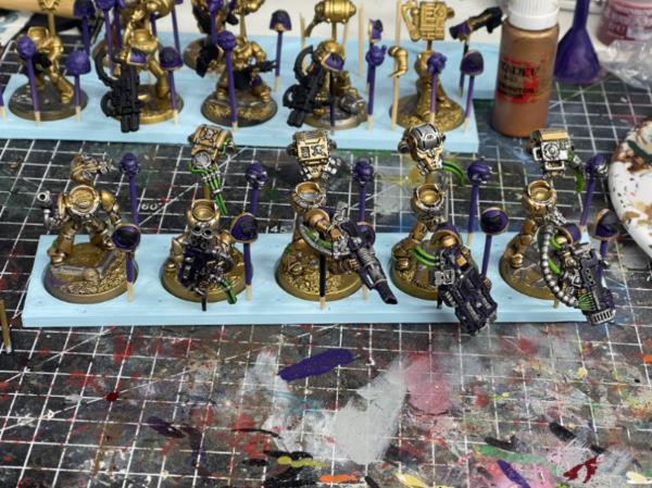 Saying that, I have made some solid progress on Terminators. The first squad got their gold neatened up after the purple was done. Then they got a wash of Nuln oil and I’ve got the Boltgun metal underway on the first couple of them.