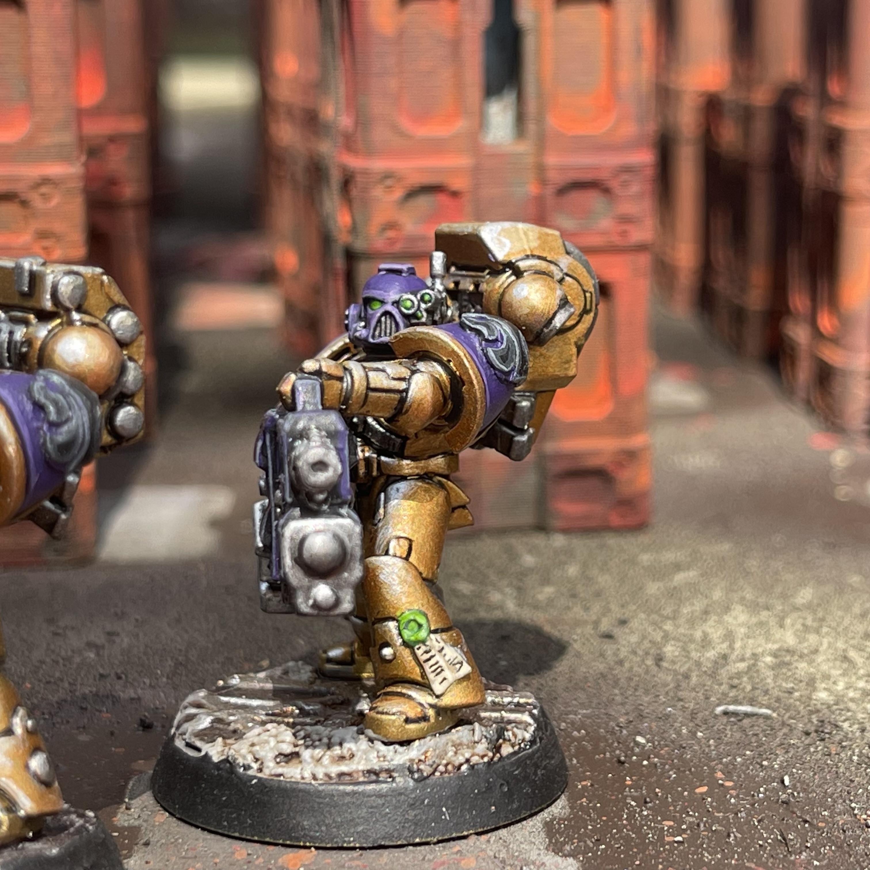 Clearly I was very messy throwing these paints down so there will be plenty of tidying up to do with both black and purple. I’m thinking purple helmets ( ) with gold stripe like my Sternguard/Company Veterans had. It worked on them and similar with the crimson fist terminators I did ages ago