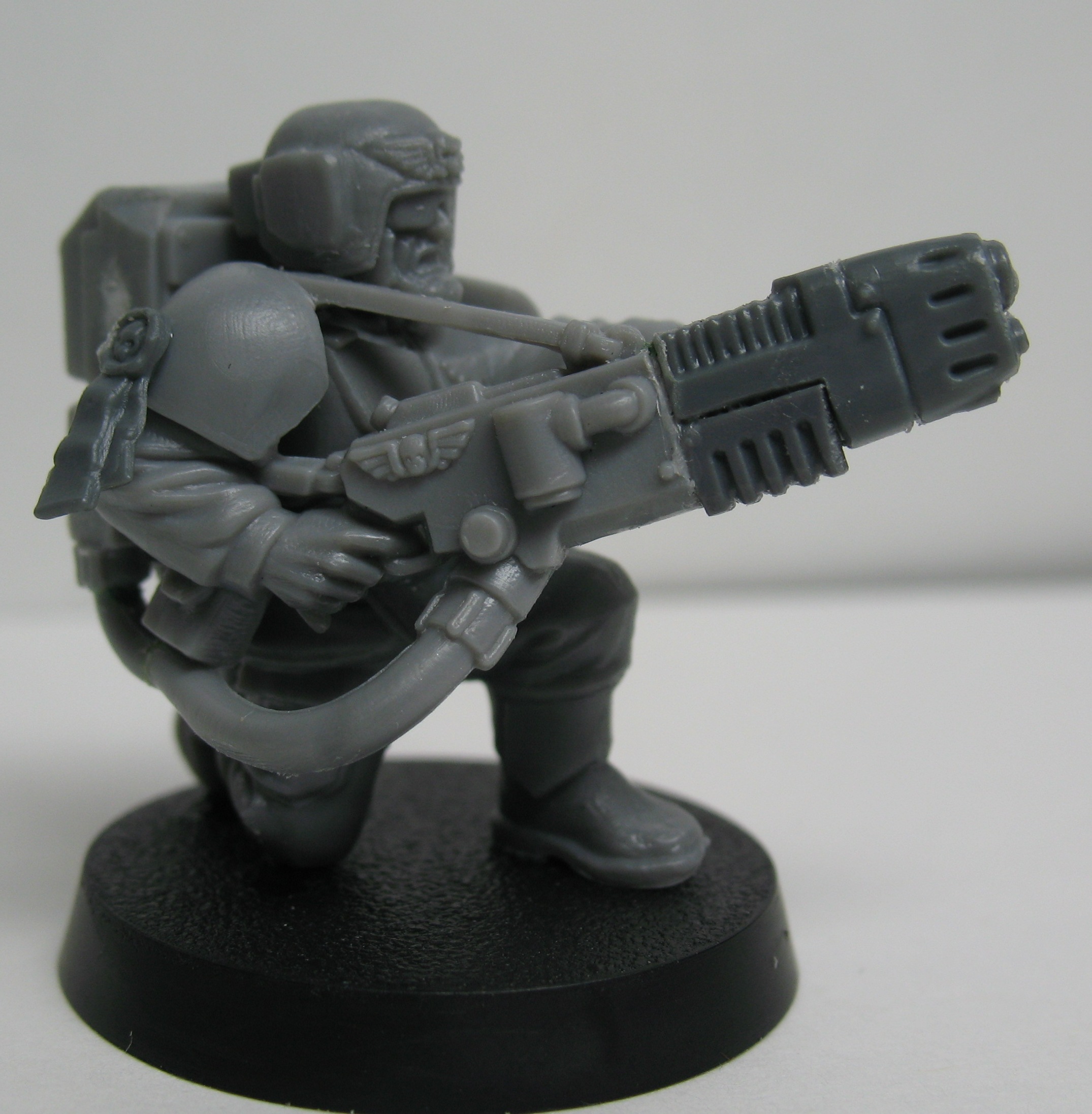 i like it. i've been thinking about how to convert special weapons myself with the plastics as i'm changing the load outs due to the new codex. i like the current metal models that have a backpack to power the weapons (except for the grenade laucher, the simplest weapon). it differentiates the guard from the marines that can just plug the weapon into their armor USB ports, lol!