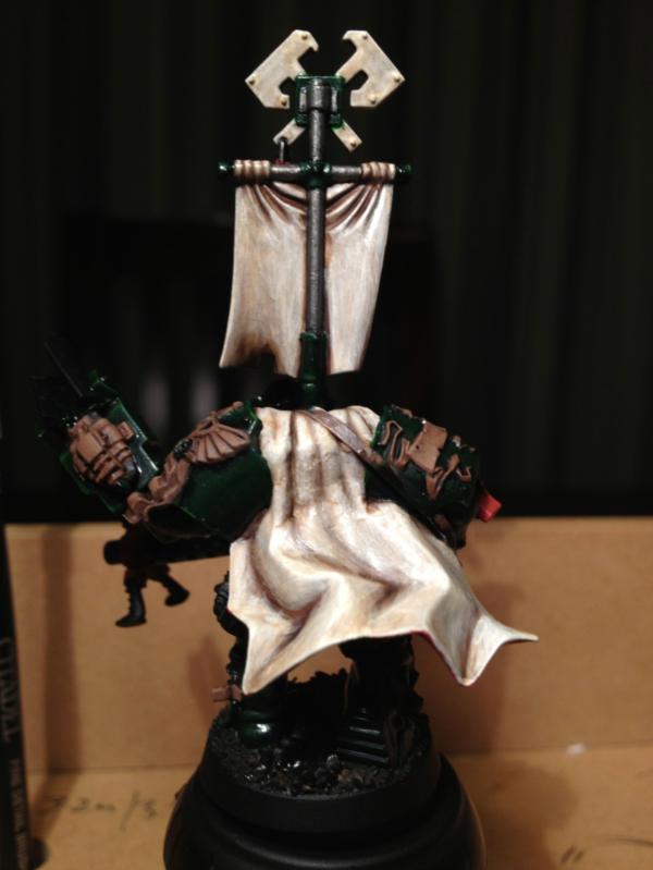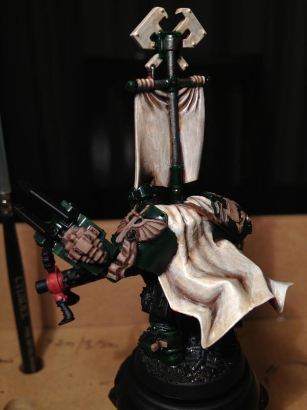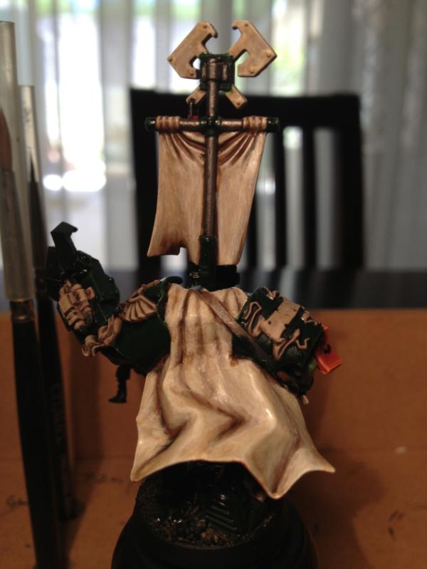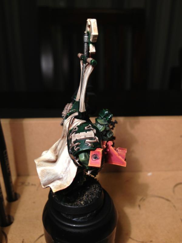 Gloss Varnished the whole thing. Applied static grass. Matt varnished the whole thing. Gloss varnished the eyes and head gear glass. Job's done! Would you believe GW Oz doesn't sell Satin Spray any more? (apparently for six years!) They actually recommended I get Testor's Dullcote from the local hobby shop! Anyway, I ended up with Tamiya Flat Clear. Seams to have done the job.