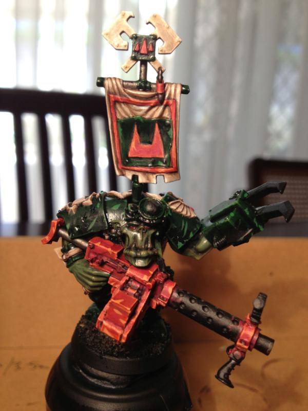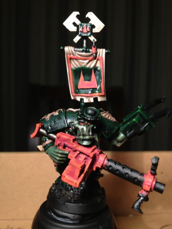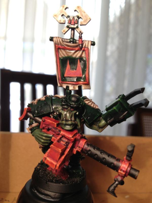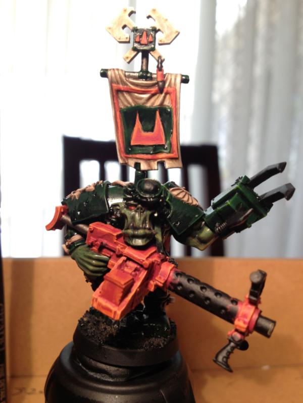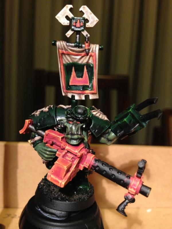 Nob looks damn amazing Arakasi. I love the little name banner with ork glyphs on his shoulder.