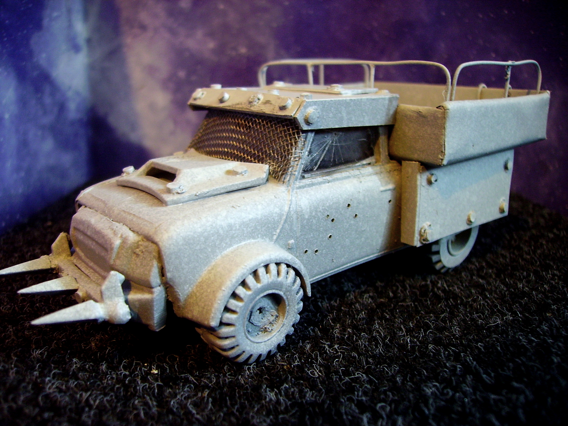 It does look a bit rough but this is perfect for a cult vehicle or just some kind of ex-military vehicle. It'll look better when I fill in the holes and spray it.
