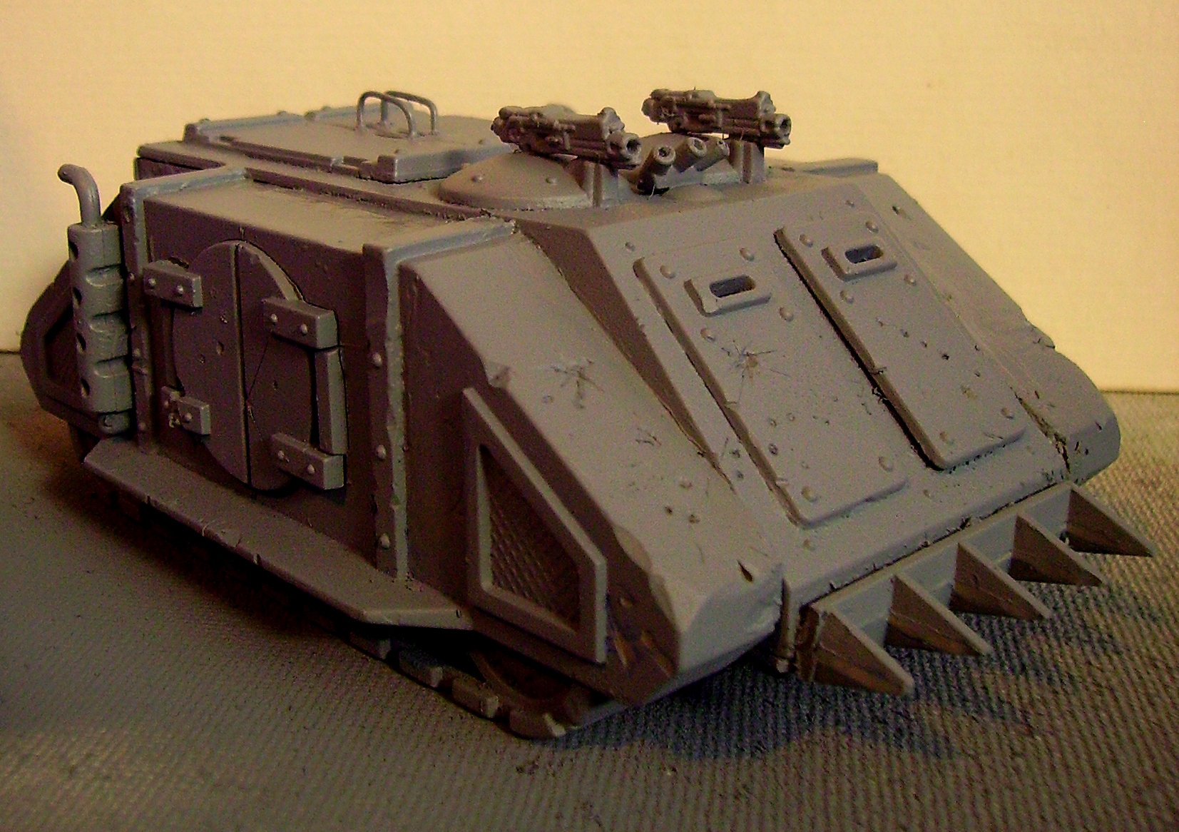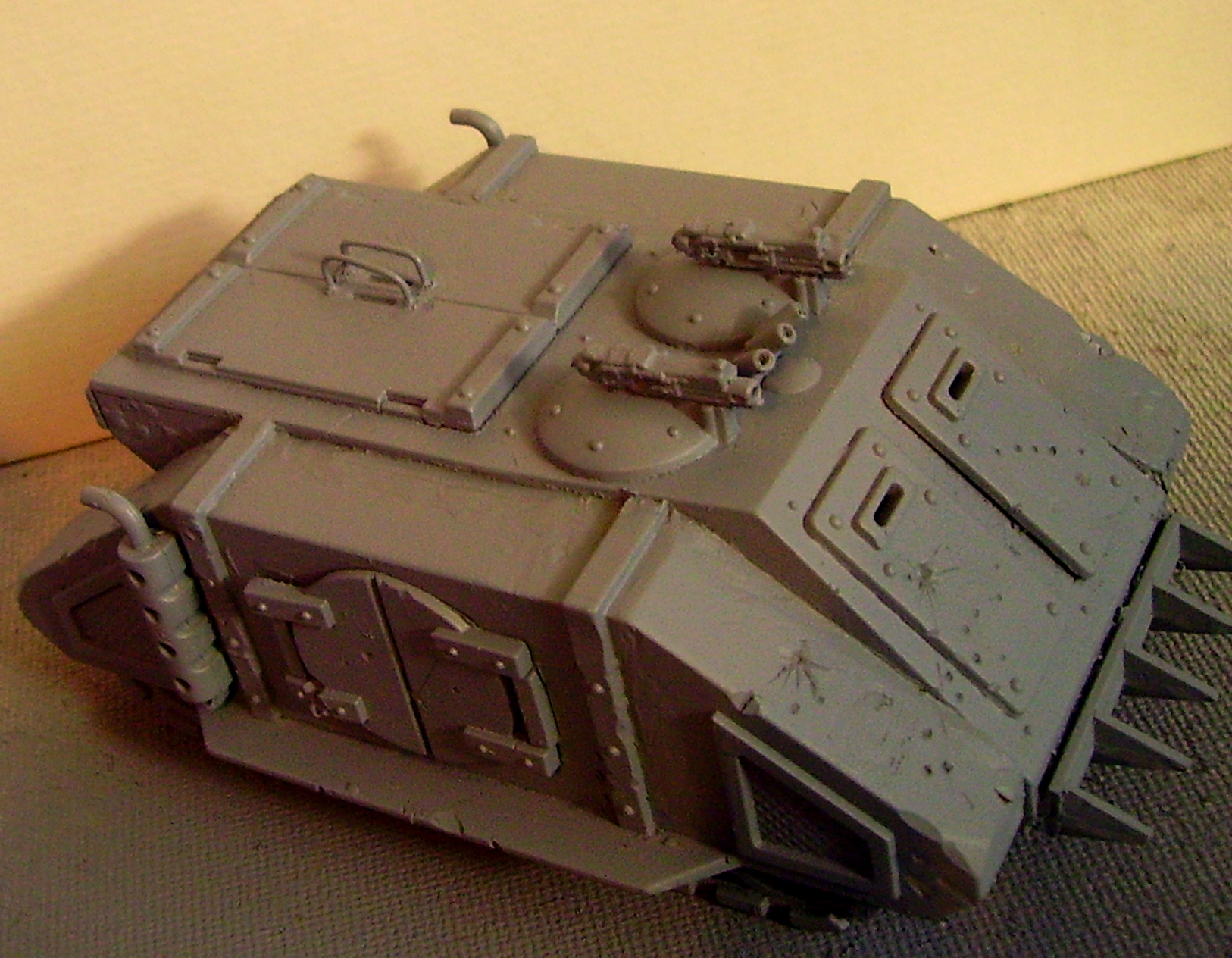 Here are some glory shots of the assembled rhino - thankyou dsteingass! I haven't put the back boxes on and I dropped and lost the only headlight - but this is good as I'm going for a slightly non-standard looking rhino - Its probably going to be genestealer cult.